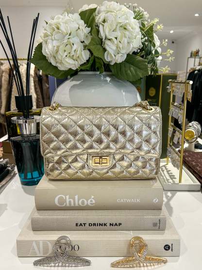 Large Genuine Leather Quilted Turn Lock Chain Handle Handbag (8 Colours)