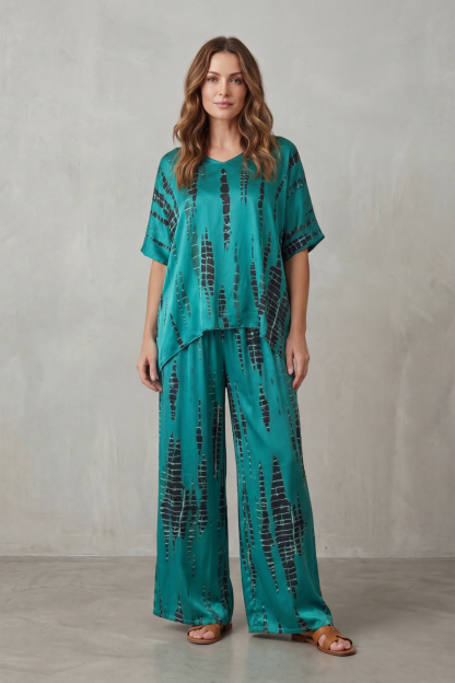Marie – Abstract Print Detail – Wide-Leg Lounge Set