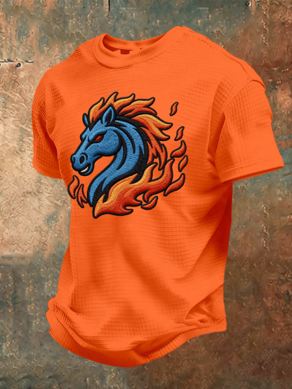 Men's Printed Casual Waffle-Knit Fabric T-Shirt