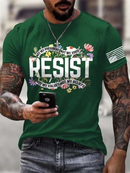 Men's Retro Resist Not My President, Not My Voice, Not My Values, Not My Beliefs Print T-Shirt