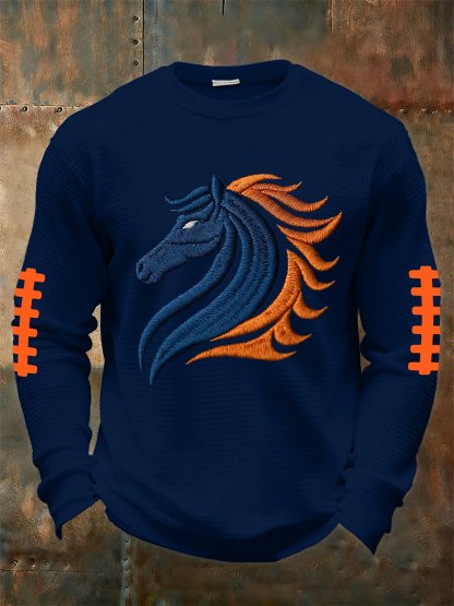 Men's retro rugby design waffle long-sleeved T-shirt