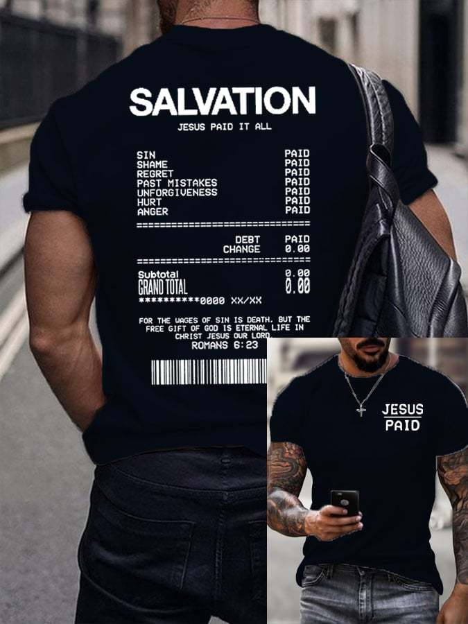 Men's Salvation Jesus Paid It All Faith Print Shirt