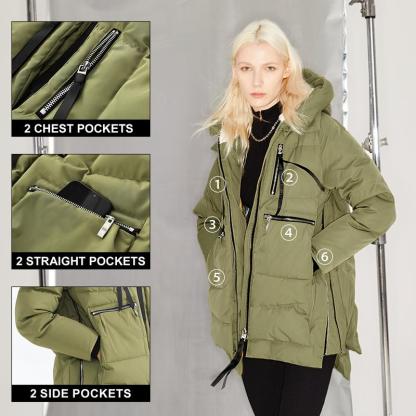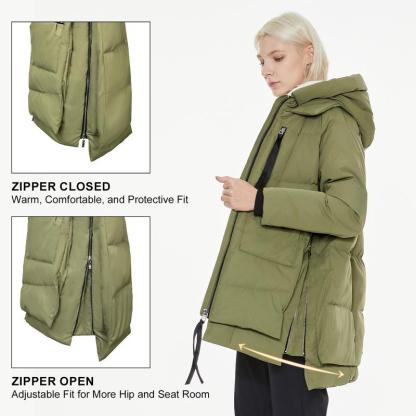 Product certified to the Responsible Down Standard (RDS)·Cotton with a density 60% higher than usual in the market. It has excellent windproof and warm-keeping quality.·The bottom of the eiderdown garment adopts unique crumples. This was coupled with fashion design and manifested a unique practicability of magnificence but at the same time not too overt.·Featuring a warm fleece-lined hood, special side zippers, and 6 big pockets, it is warm and cute for you to enjoy outdoor activity on wintry days.·An ideal winter coat for women, offering the perfect blend of fashion and function, this jacket will quickly become a staple in your winter wardrobe. Stay warm and stylish throughout the season.·Notice: The coat may arrive compressed due to packaging. Simply shake it gently and hang it up to restore its shape.