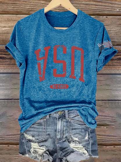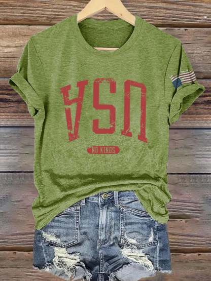 🔥Buy 3 Get 15% Off🔥Retro Upside Down USA & Flag No Kings Print T-Shirt