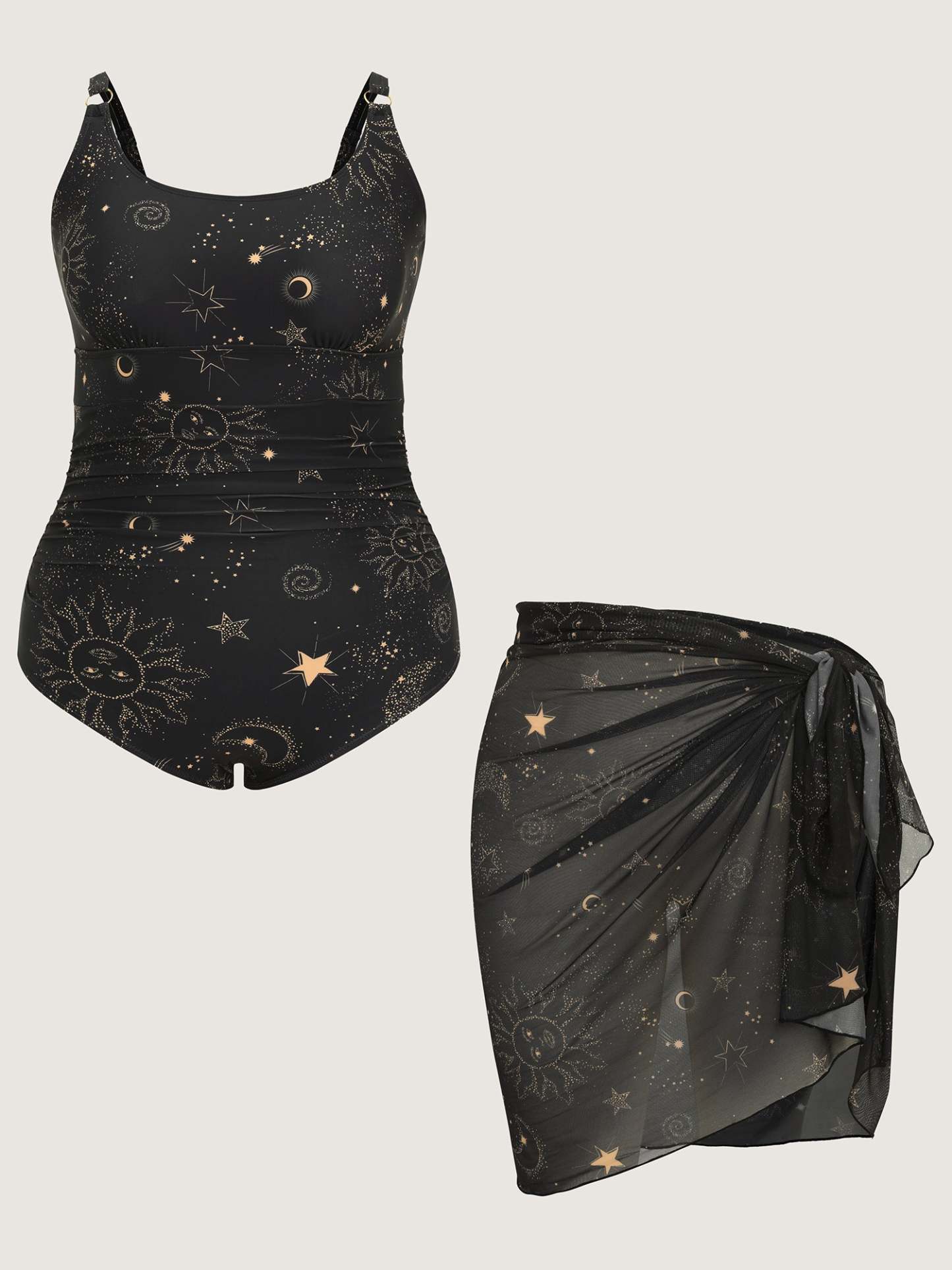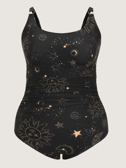 Shop Sarong Set Star Print One-Piece Swimsuit now and redefine your style with confidence at BloomChic. Tailored for mid and plus-size women. This trendy Swimwear Women, sizes 10-30. Color:Black;Style_2:Resort;Waist Design:Mid Rise;Neckline:U-neck;Sleeve Type:Sleeveless;Pattern:Non;Details:Adjustable Straps;Pocket:No-pocket;Belt:No-belt;Lining:Lining;Closure Type:Pull-On;Structural function:Full Coverage;Swimsuit types:Sarong & One-Piece Set