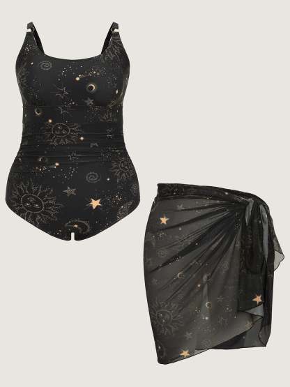Sarong Set Star Print One-Piece Swimsuit