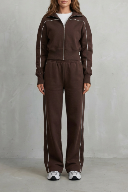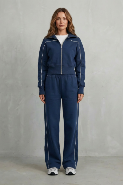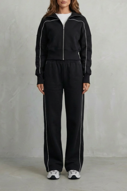 Savina – Urban Edge Piped Zip Jacket & Wide-Leg Pants Set