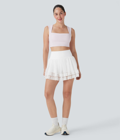 SoCinched High Waisted Tummy Control Contrast Mesh 2-in-1 Mini Dance Skirt with Pockets