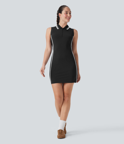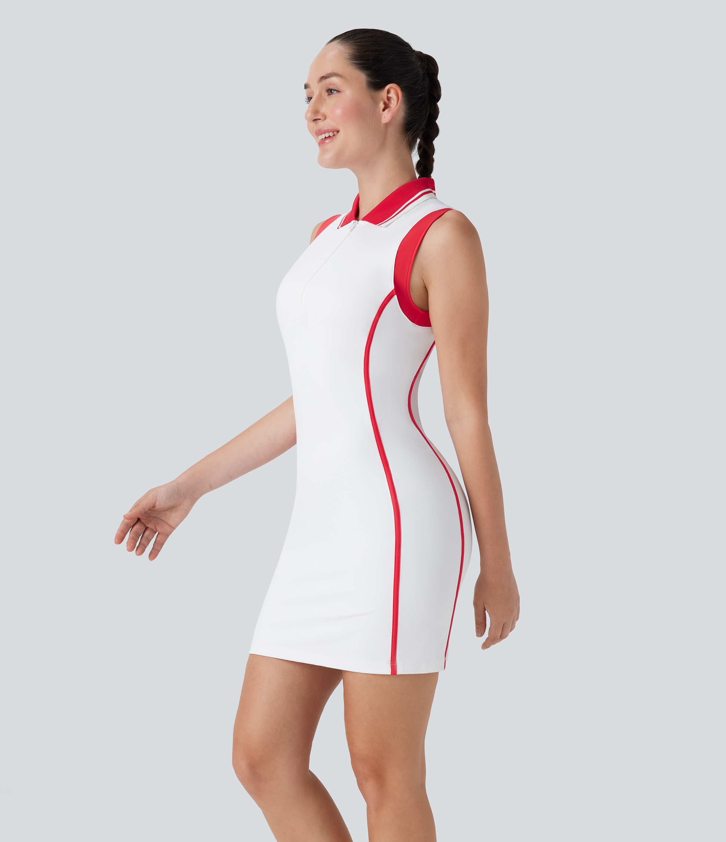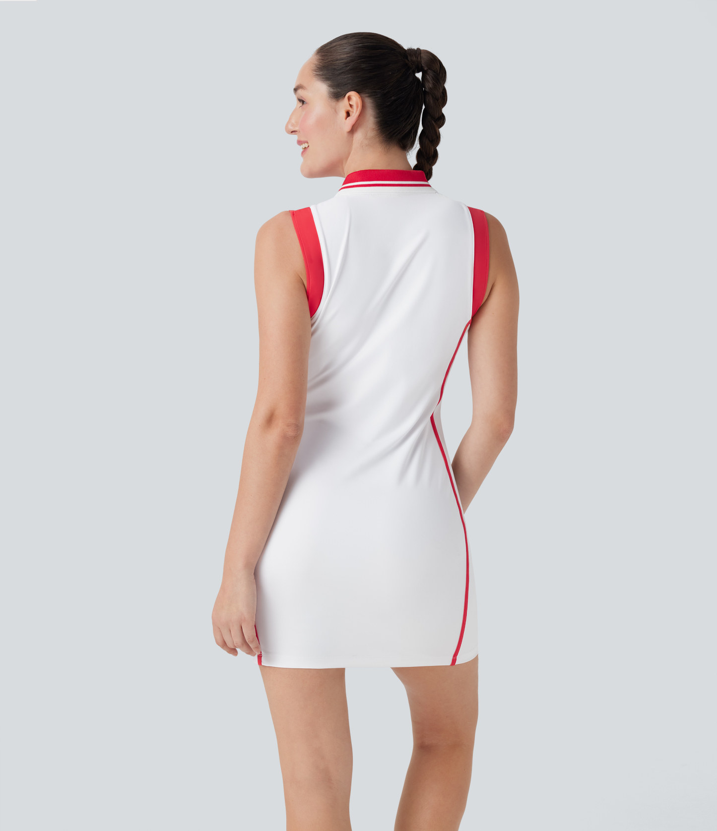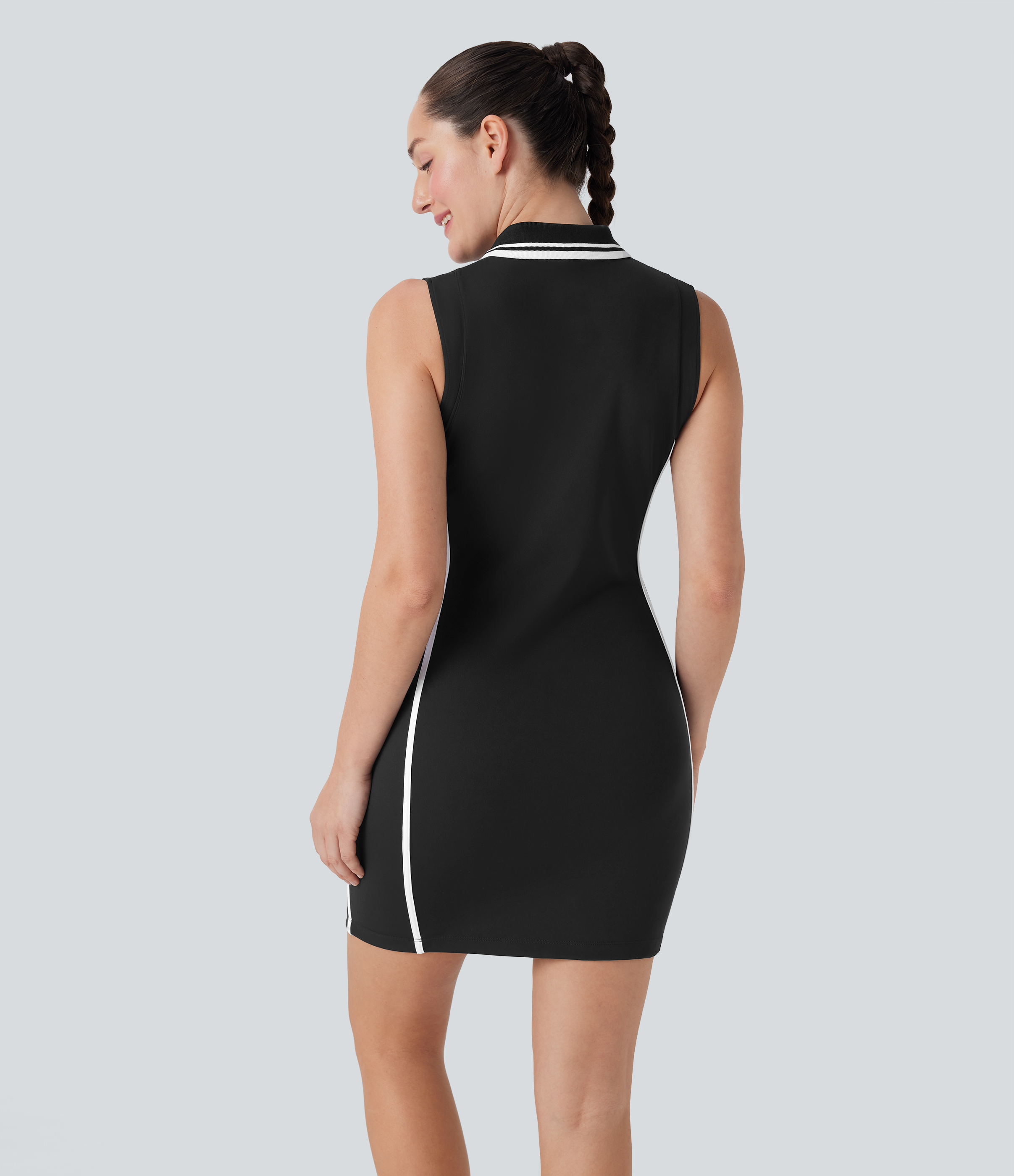 SoftlyZeroTM Airy Color Block Polo Zip Sleeveless Bodycon Cool Touch Mini Casual Dress-UPF50+