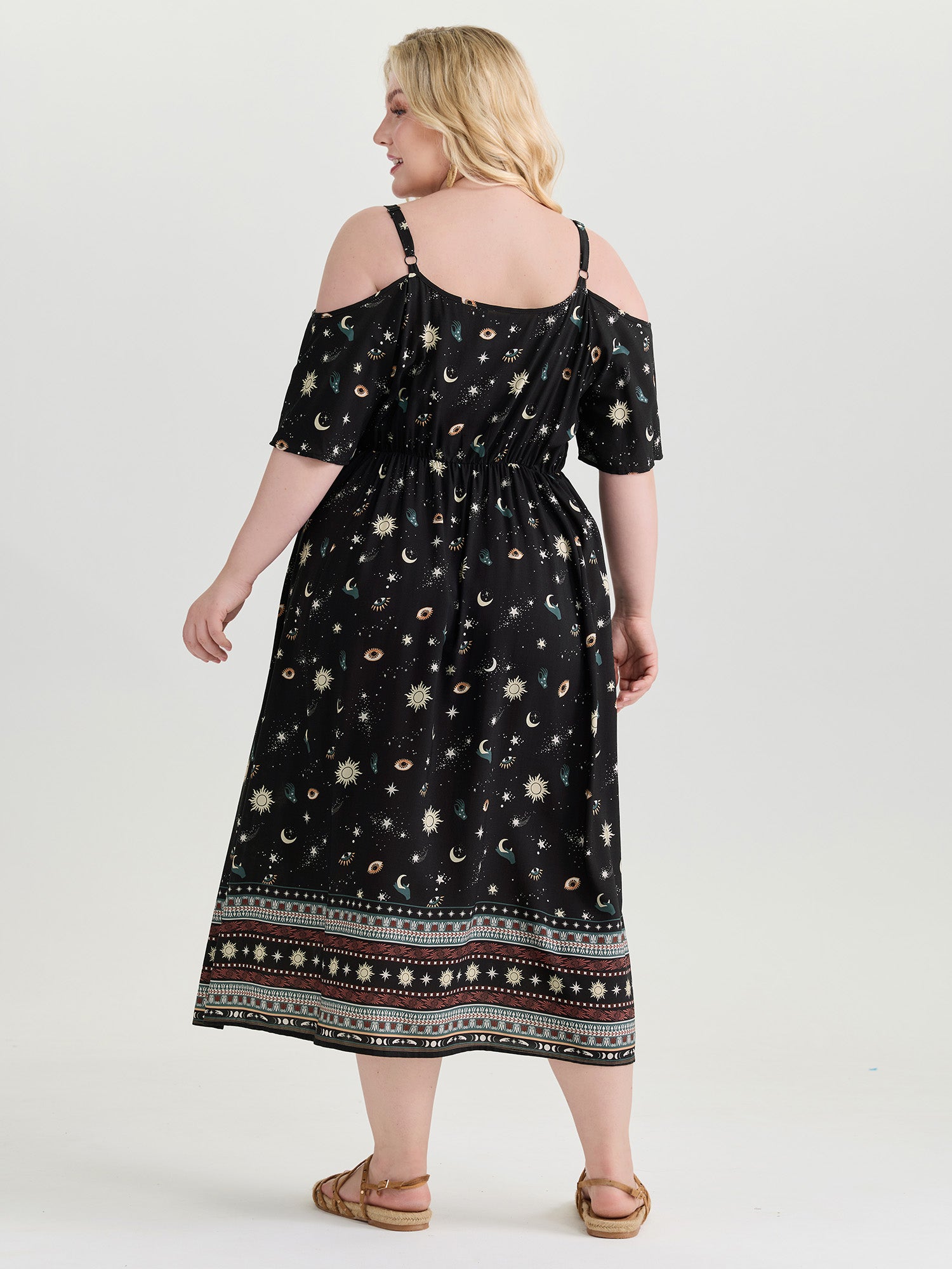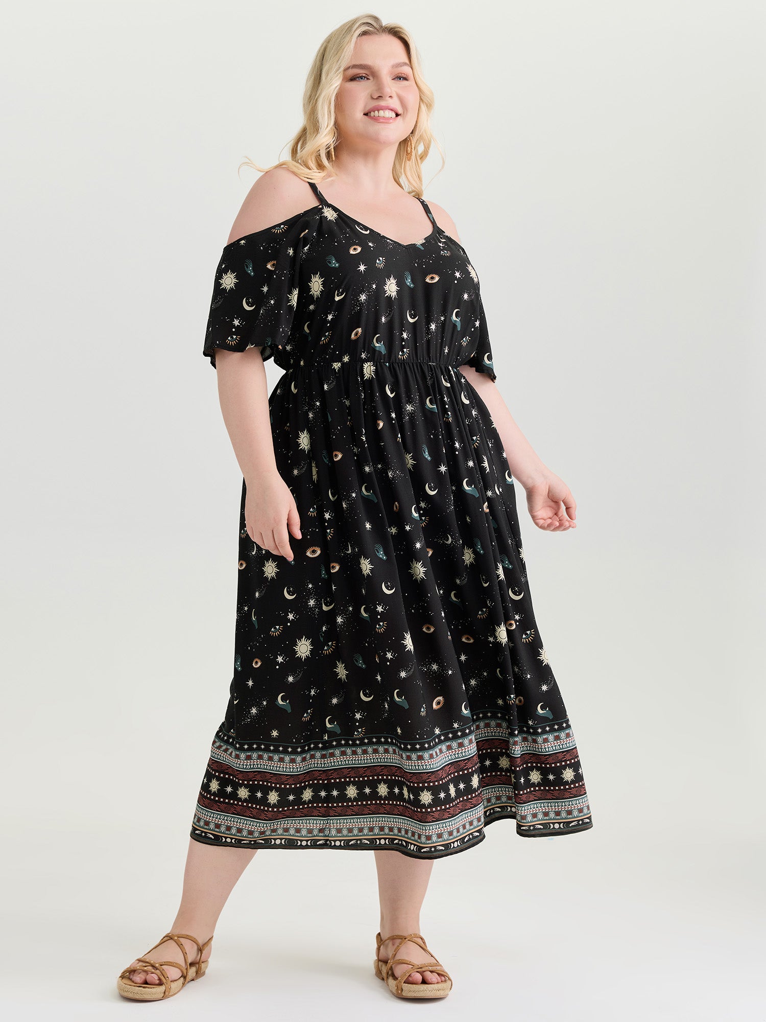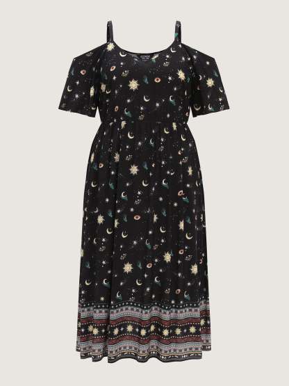 Starry Night Cold-Shoulder Flowy Midi Dress