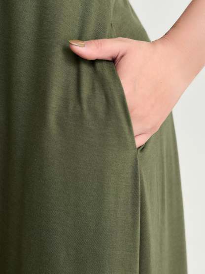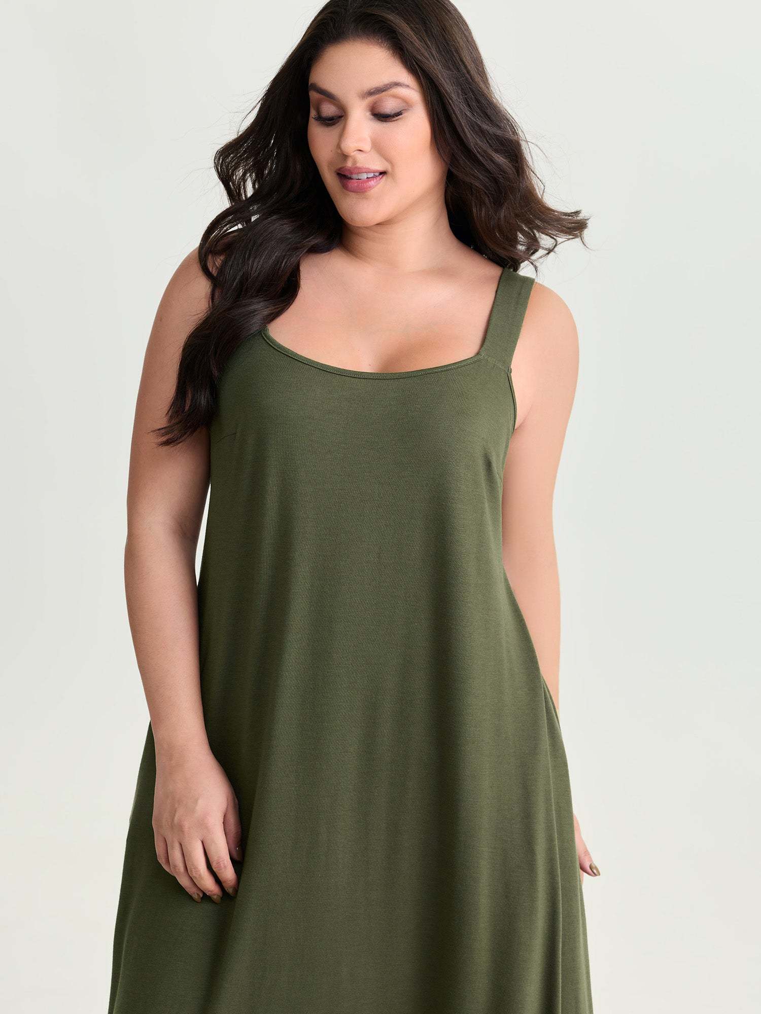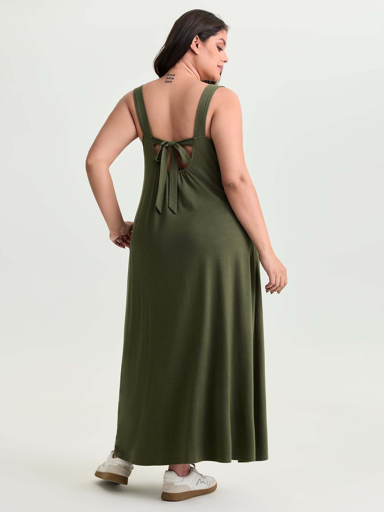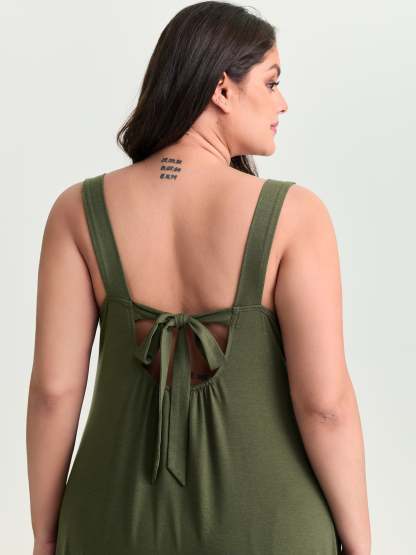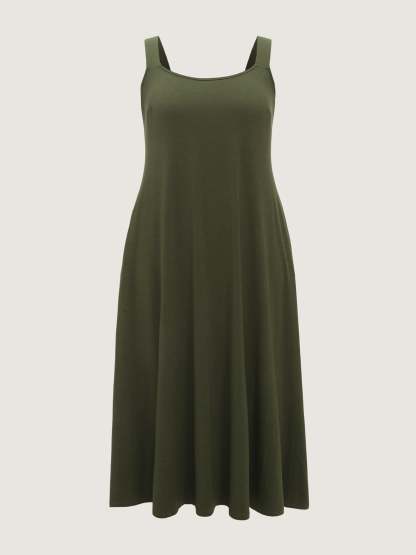 Shop Supersoft Wide-Strap Relaxed-Fit Maxi Dress now and redefine your style with confidence at BloomChic. Tailored for mid and plus-size women. This trendy Dress, sizes 10-30. You can never go wrong with BloomChic Dresses. Color:Army Green;Style_2:Leisure;Neckline:Round Neck;Sleeve Type:Sleeveless;Pattern Type:not graphics;Pattern:Non;Details:Lace-Up, Gathered;Pocket:Side seam pocket;Belt:No-belt