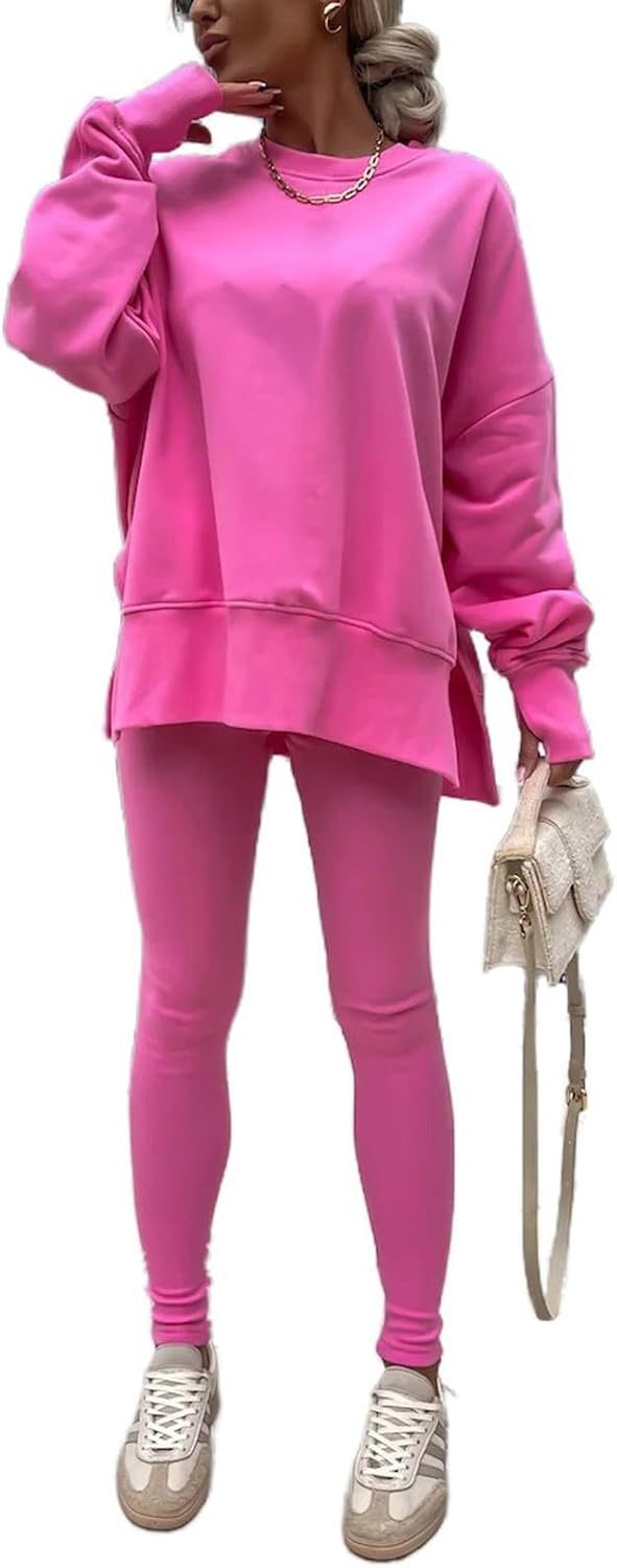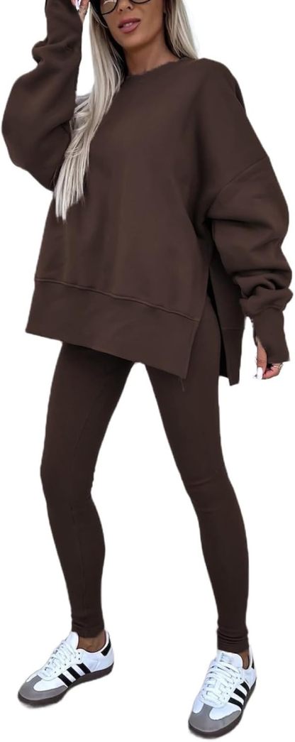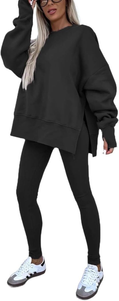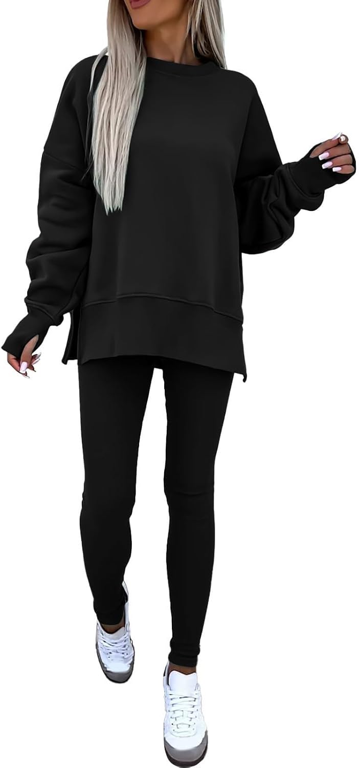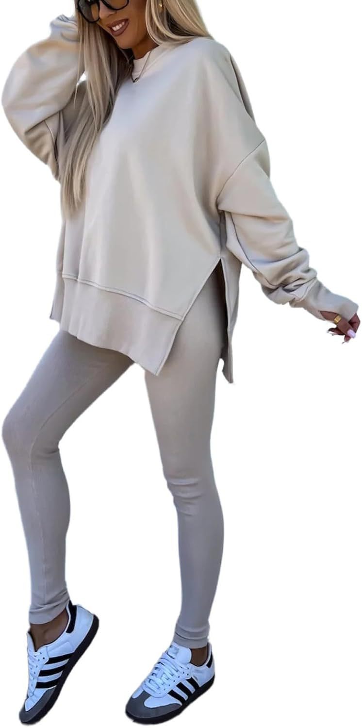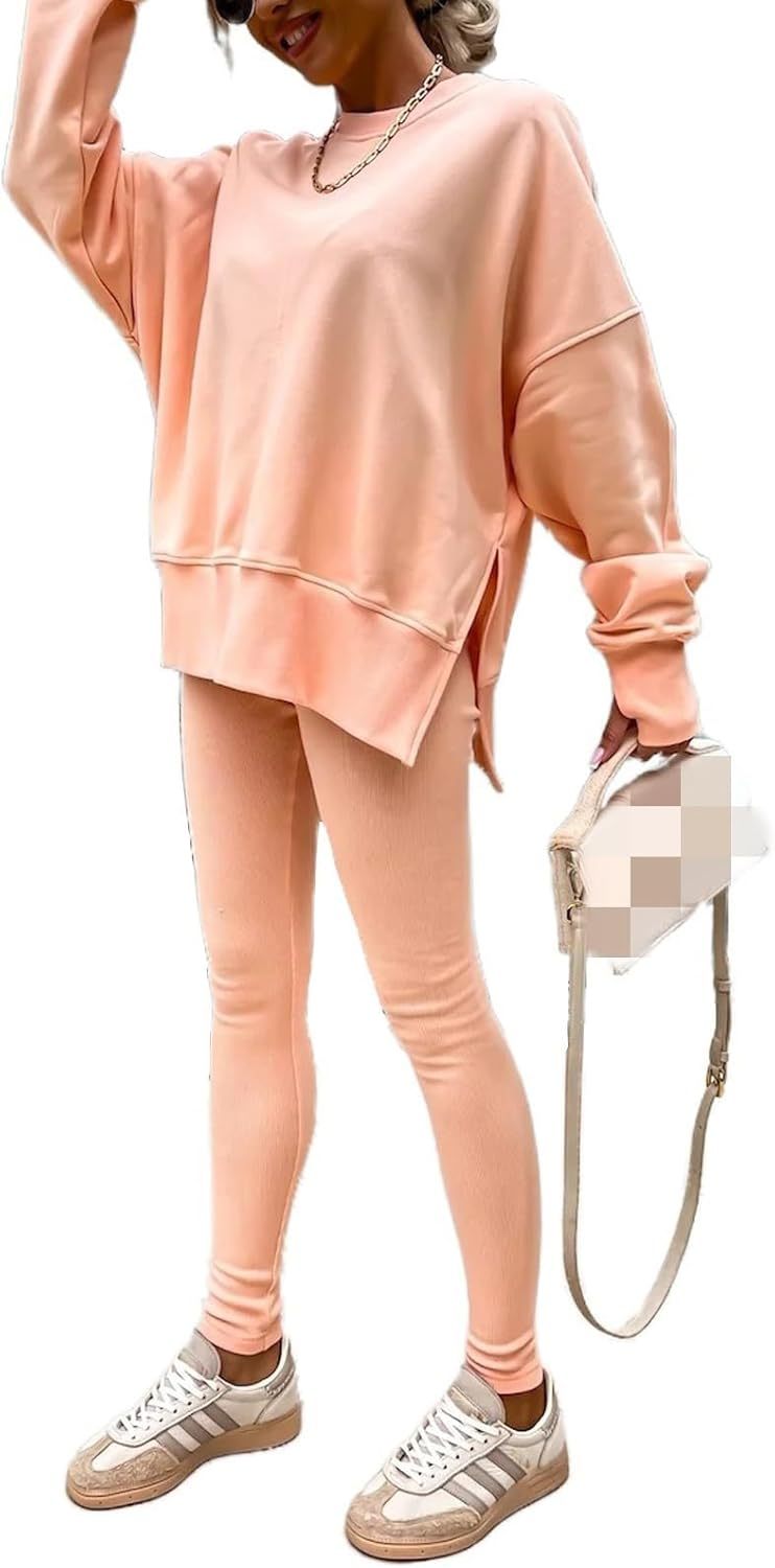 Sweatshirt and Leggings Set for Womens 2 Piece Outfits, Outfits Side Split Oversized Sweatshirt set
