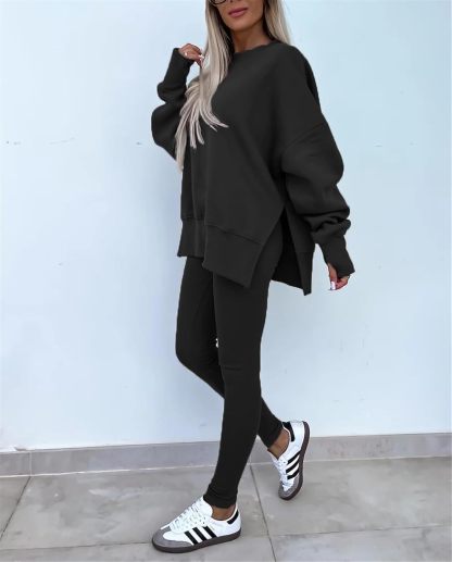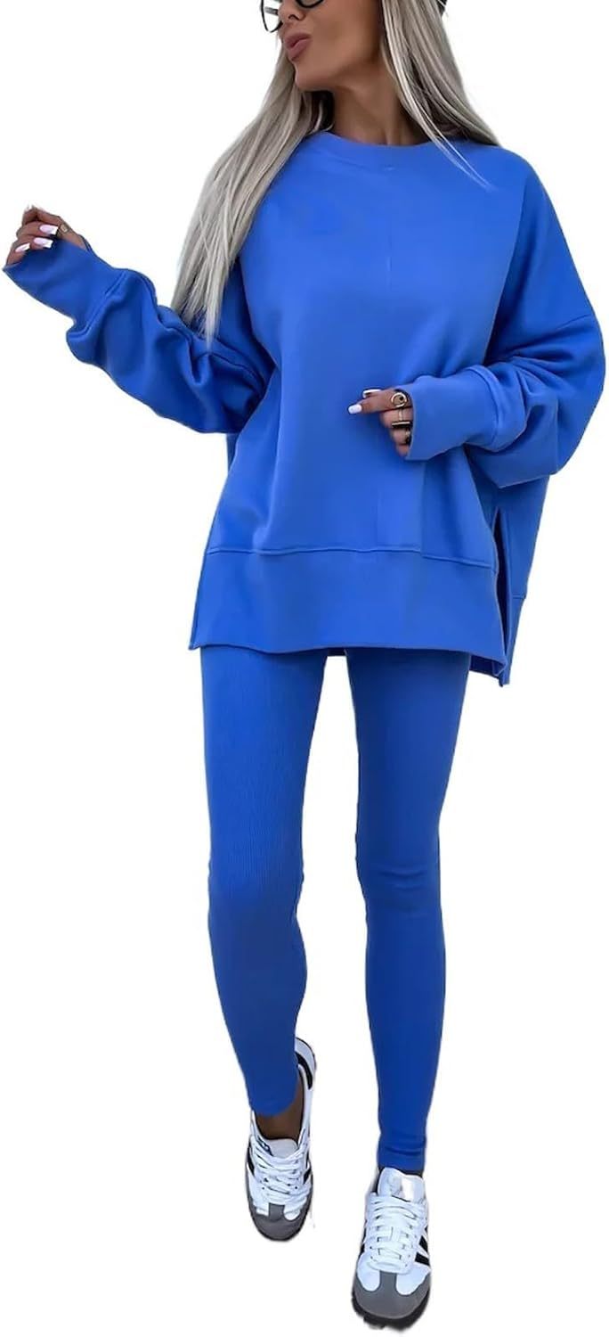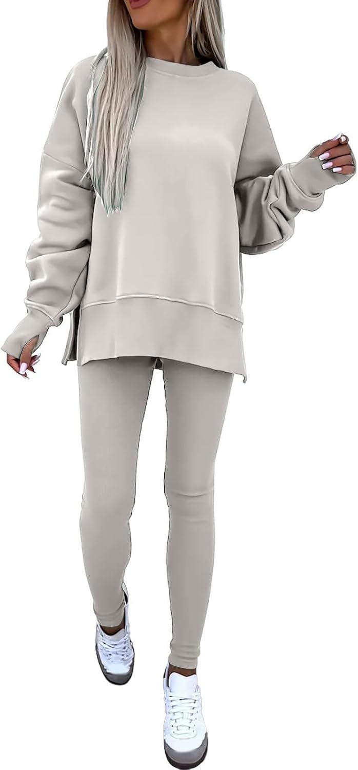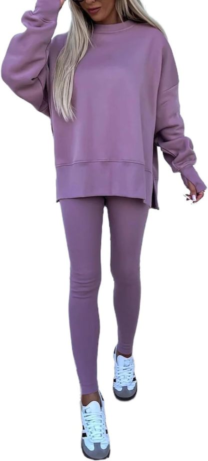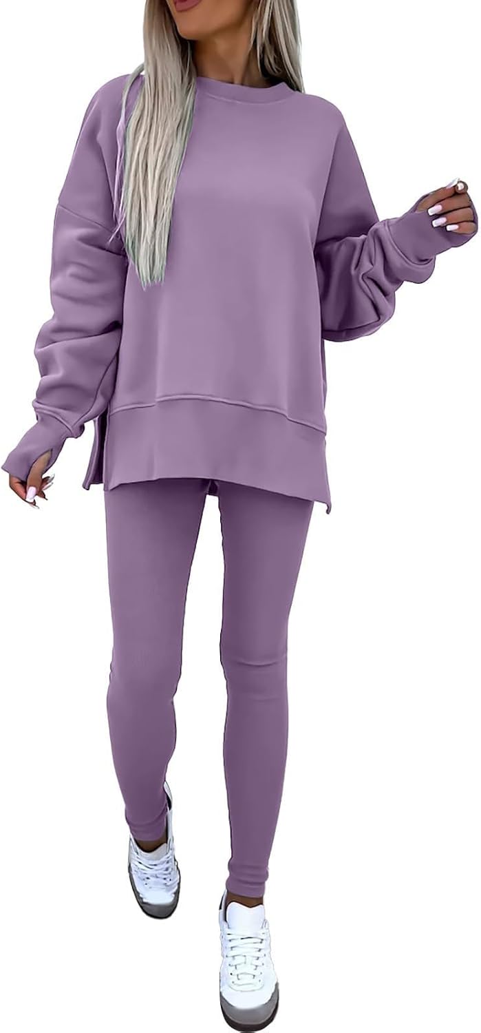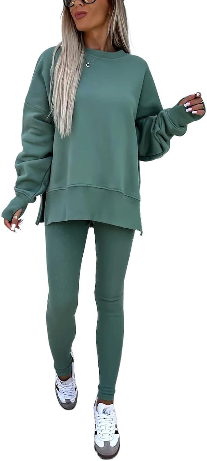 Sweatshirt and Leggings Set for Womens 2 Piece Outfits, Outfits Side Split Oversized Sweatshirt set