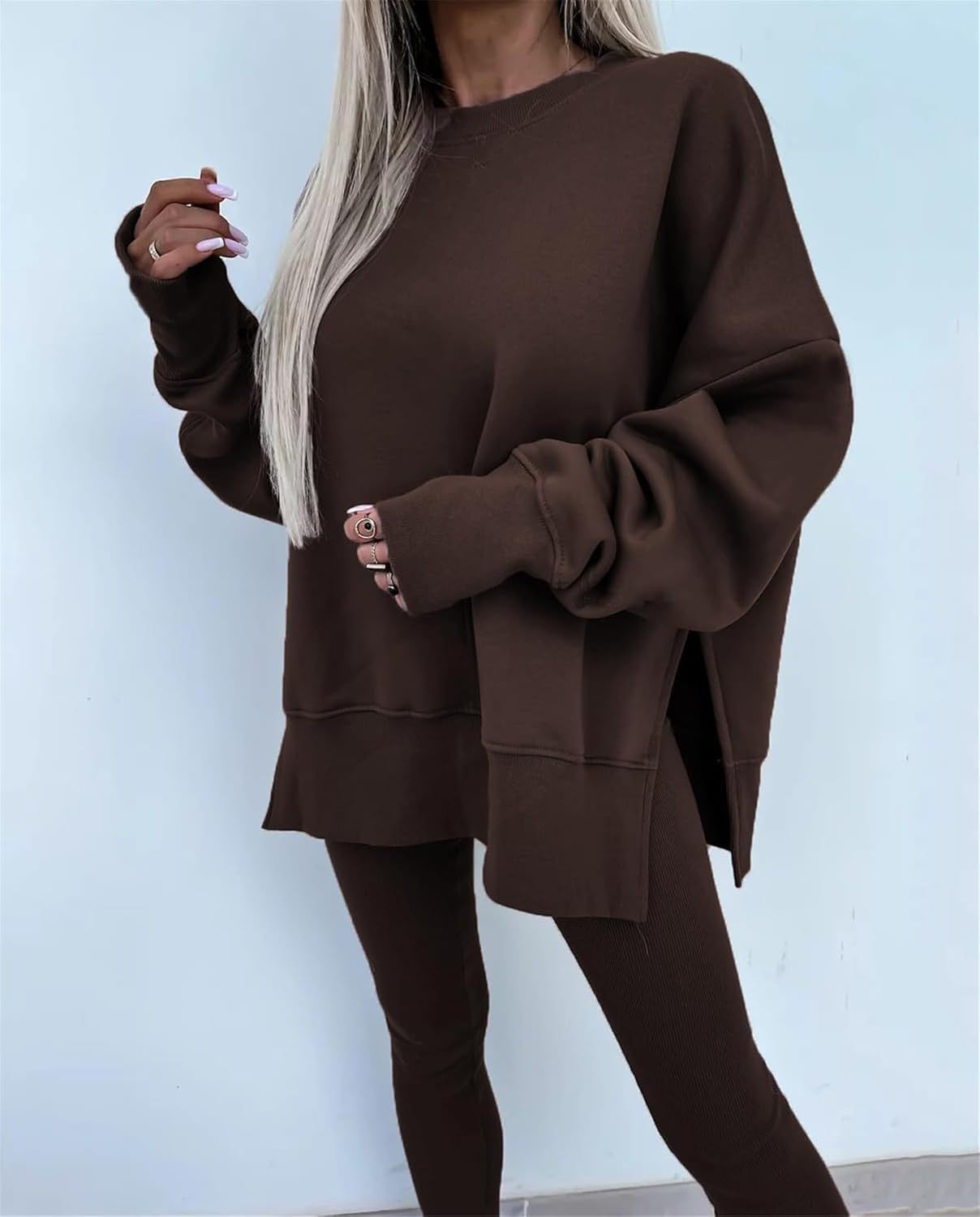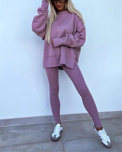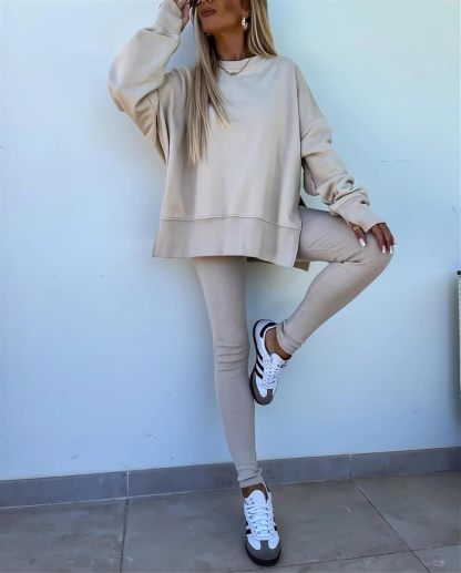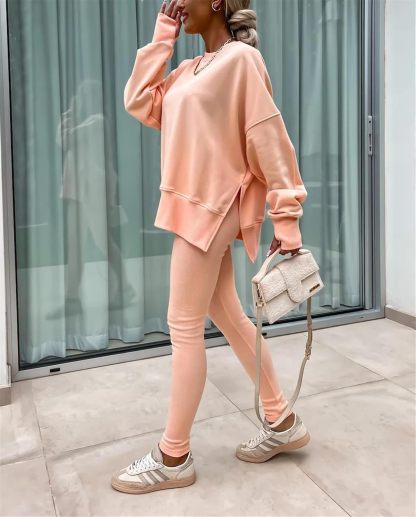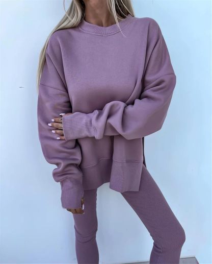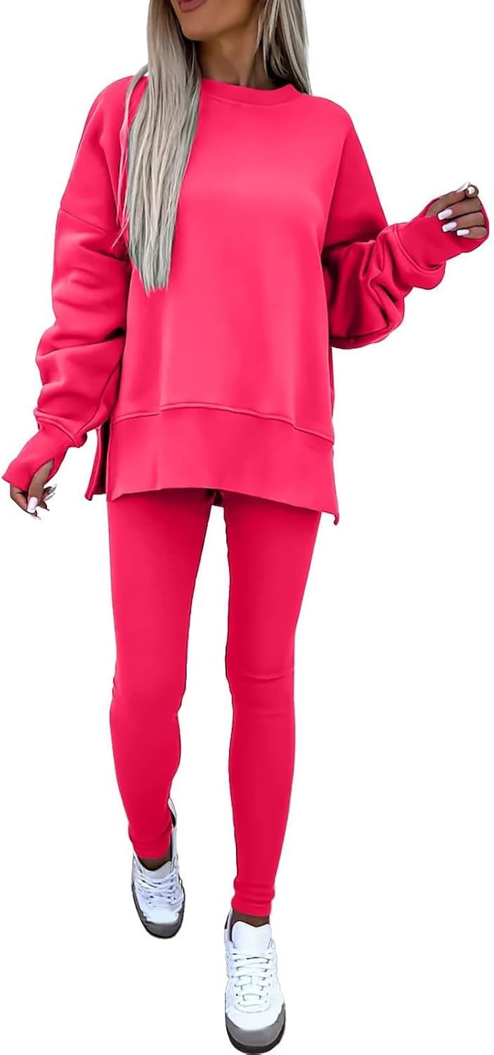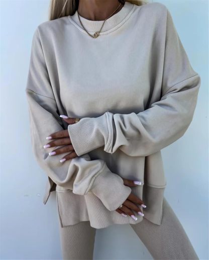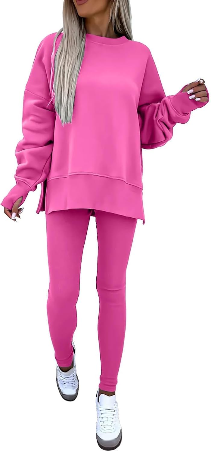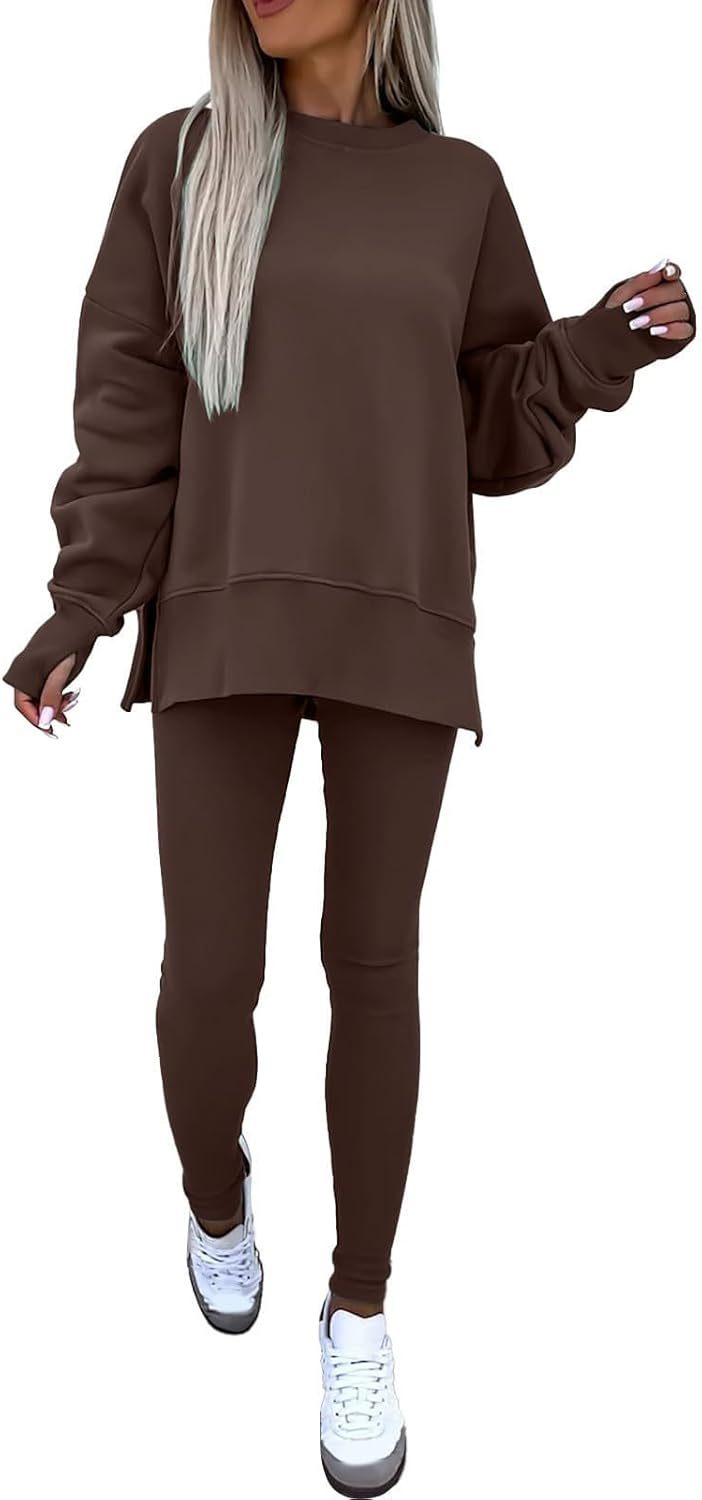 Sweatshirt and Leggings Set for Womens 2 Piece Outfits, Outfits Side Split Oversized Sweatshirt set
