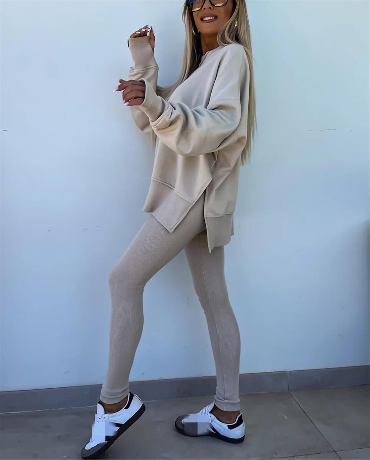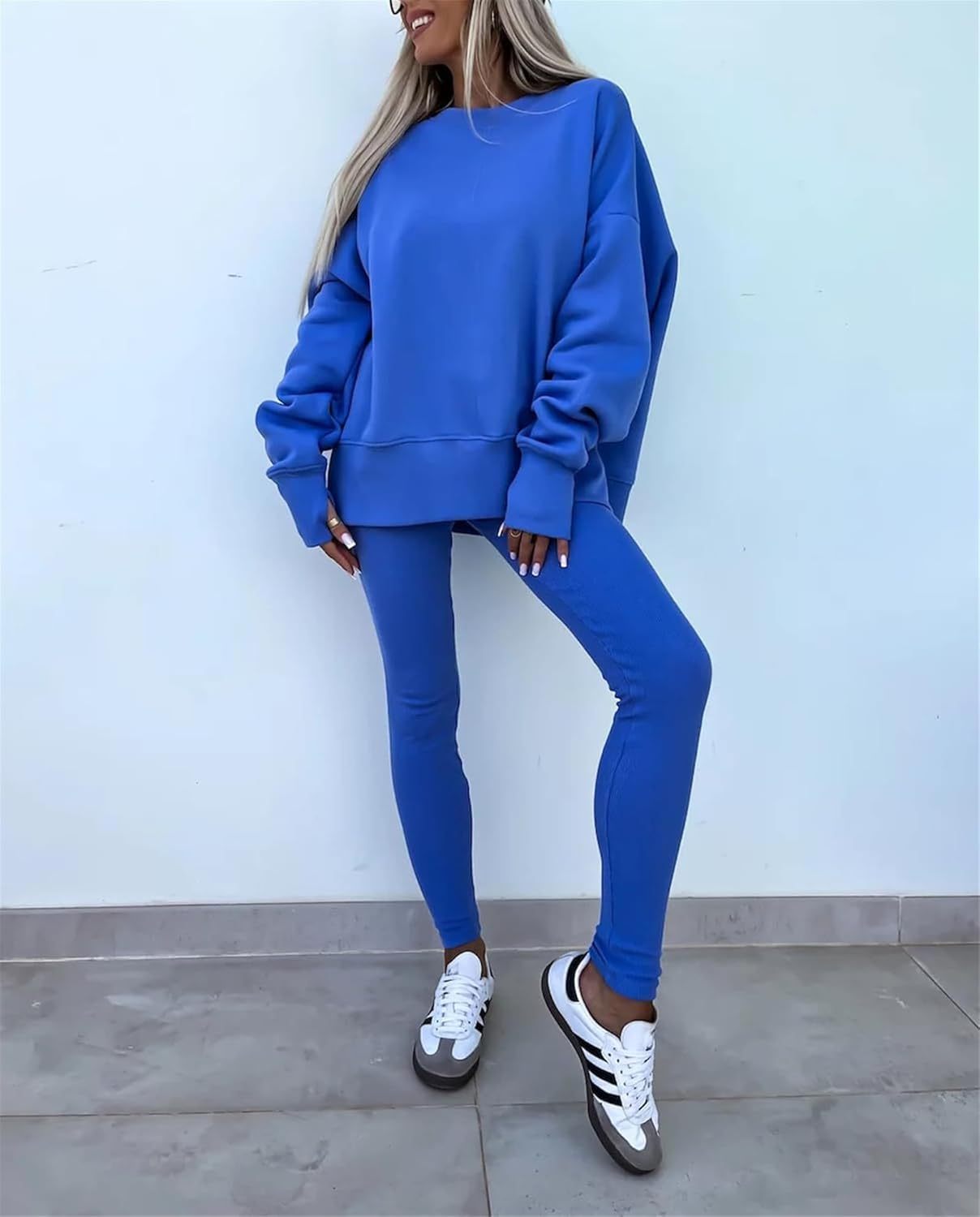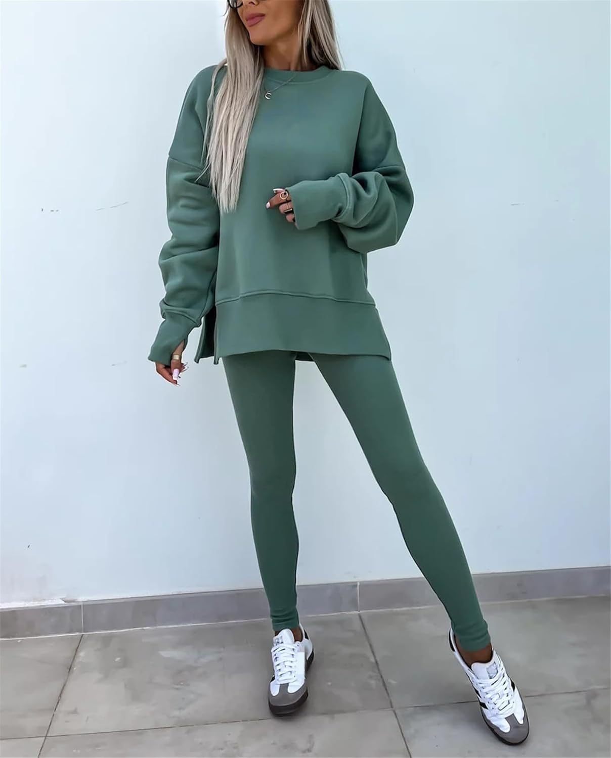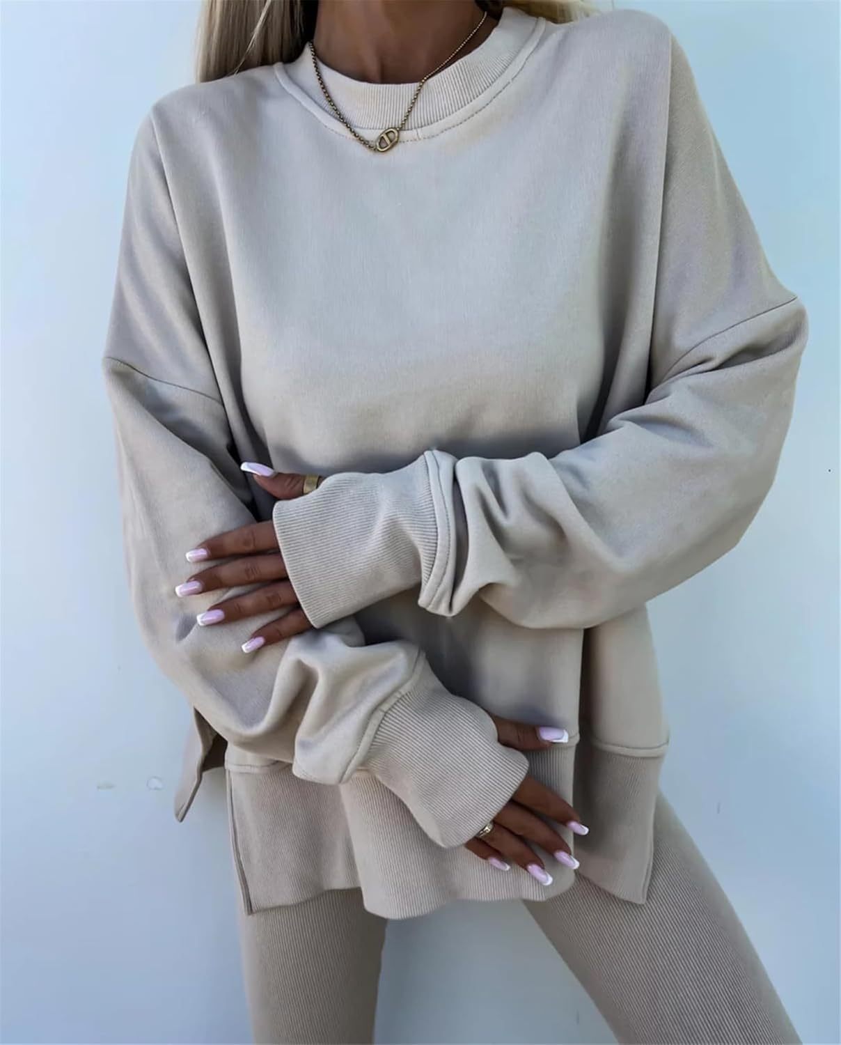 • Feature: Pants sets women 2 piece outfits, solid color set, long sleeve oversize sweatshirt with thumb hole, stretchy skinny pants, slim fit yoga outfit for women, streetwear style
