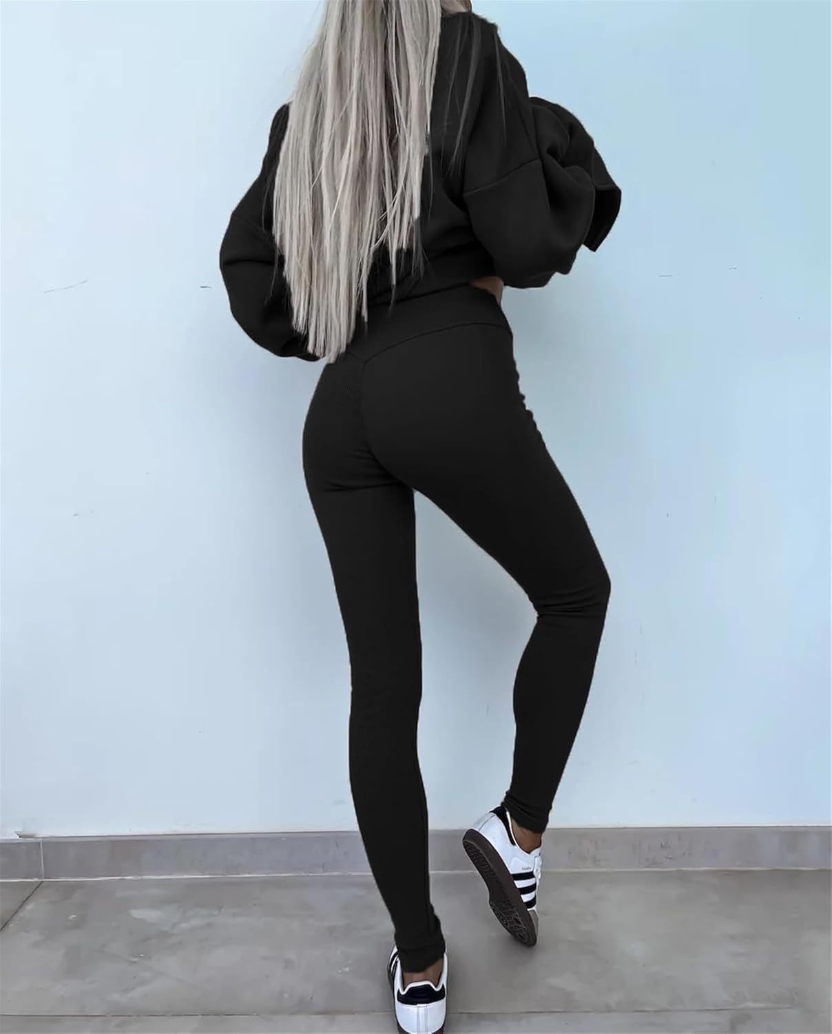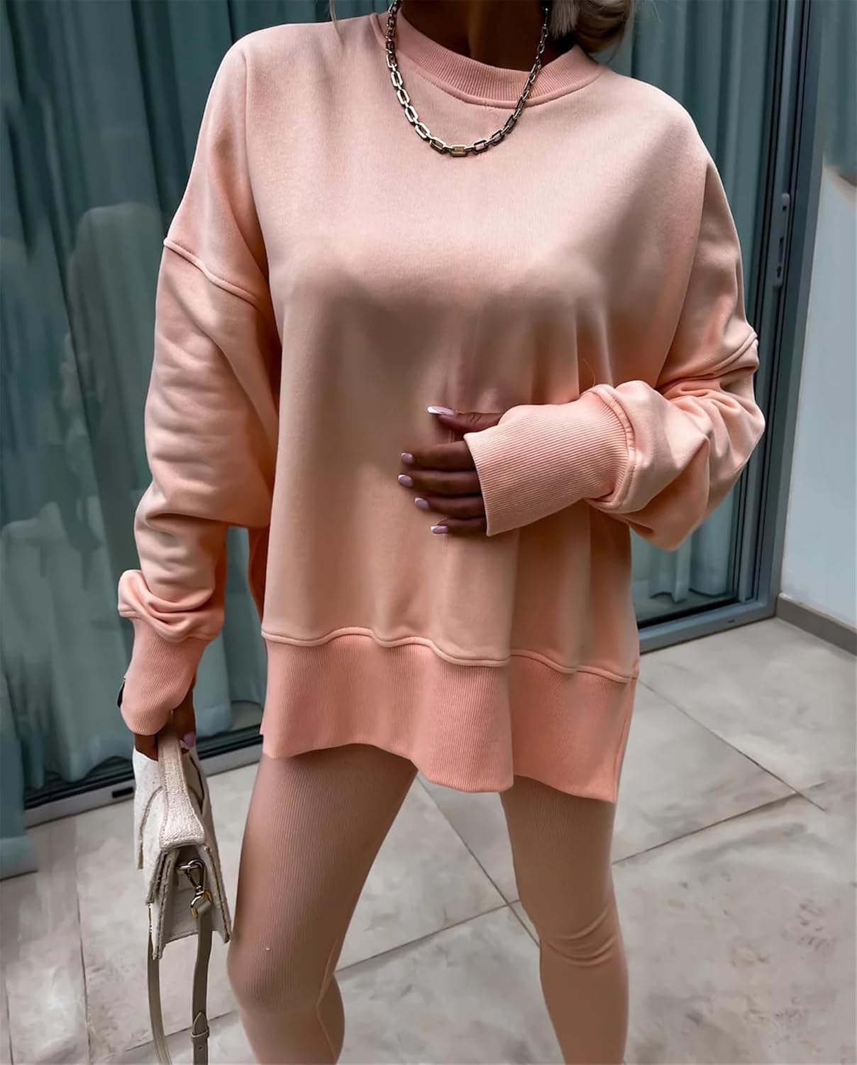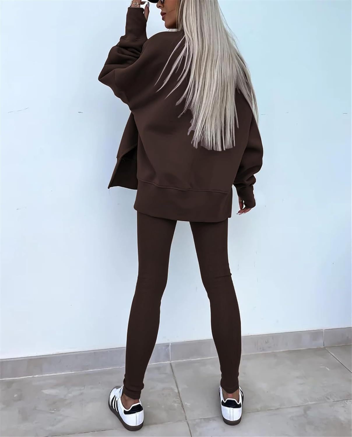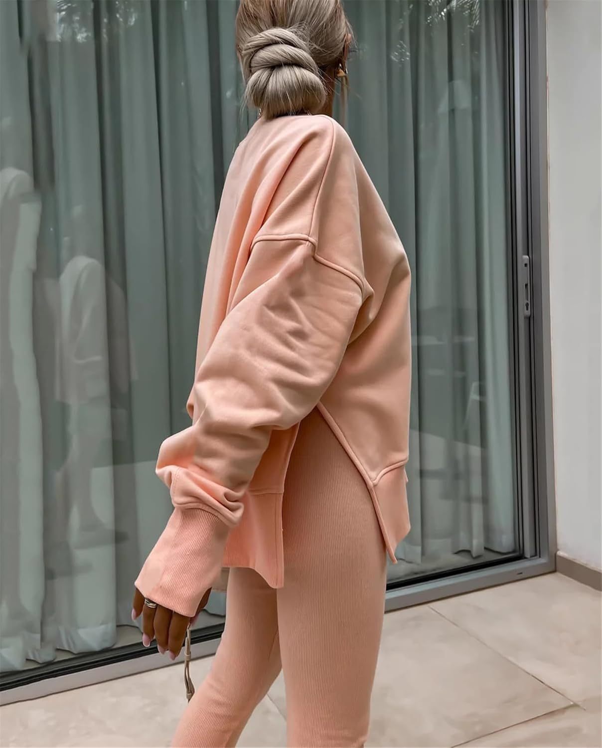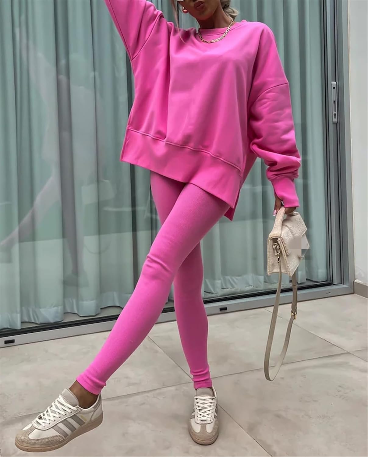 • Feature: Pants sets women 2 piece outfits, solid color set, long sleeve oversize sweatshirt with thumb hole, stretchy skinny pants, slim fit yoga outfit for women, streetwear style