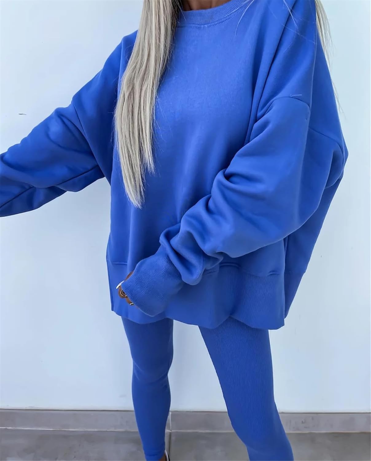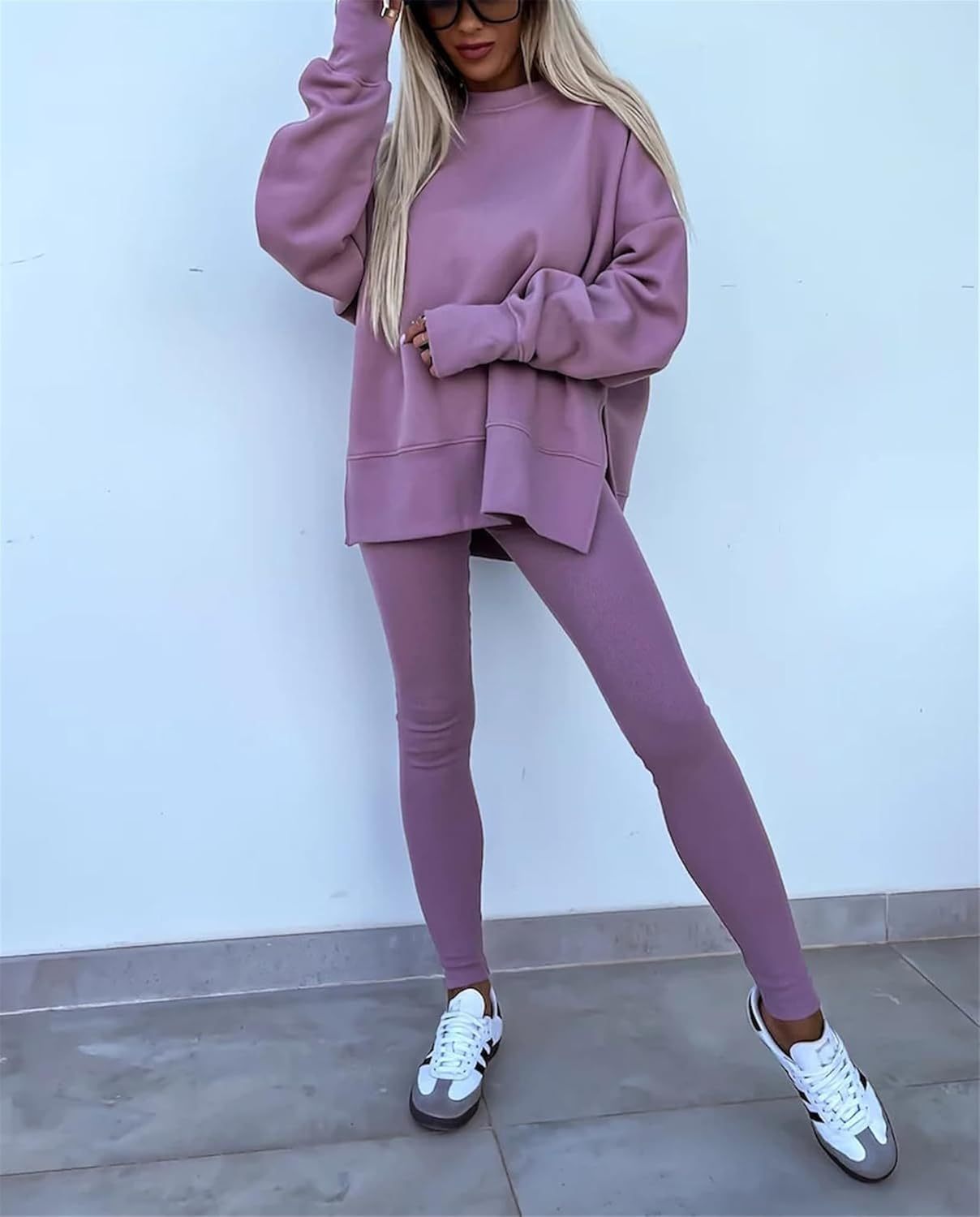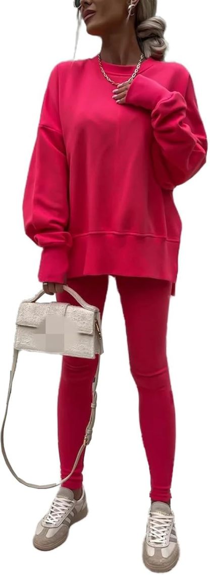 • Design:This Tracksuit set designed a sweatshirt with leggings. oversized Sweatsuit,skinny leggings set for sport workout. Athletic and casual style two-piece suit with comfortable fabric, the sweatshirt and leggings can be worn separately, giving you more ways to match