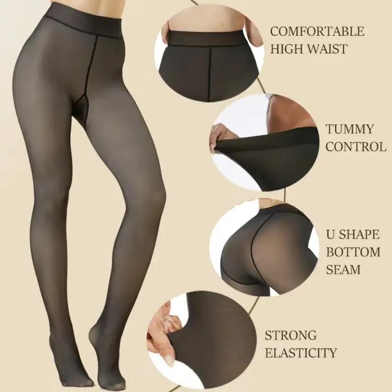 Fleece Lined Tights One-Lined Seams both front and back! Womenswear Size XS - 4XL Winter Basic Tights Leggings Thick Semi-Transparent Casual Underwear Pantyhose Closed Foot Available in Light Mid Deep Skin Tone 001