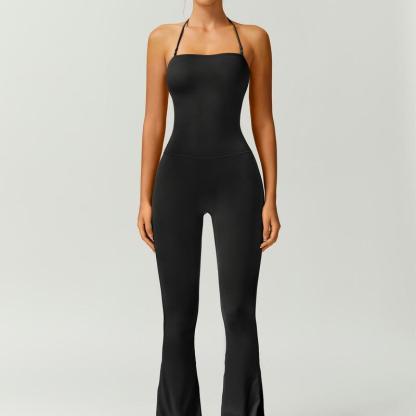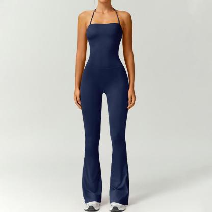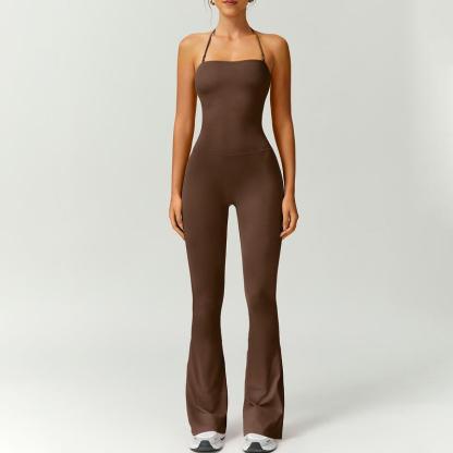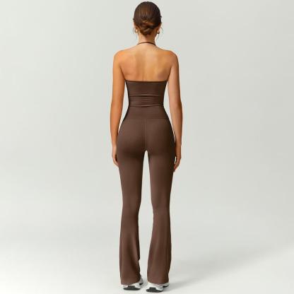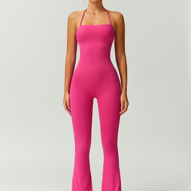 Women's Halter Neck Bodycon Flared Leg Jumpsuit – Stylish & Comfortable for Fitness & Fashion,Stylish & Comfortable Athleisure Outfit, Butt Lifting, High Waist Workout Gym Clothing Stretchable Activewear,jumpsuit women