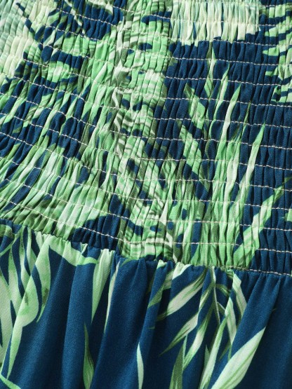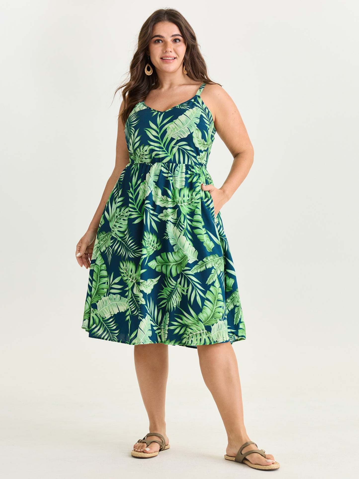 Shop Tropical Plant Print V-Neck Midi Dress now and redefine your style with confidence at BloomChic. Tailored for mid and plus-size women. This trendy Dress, sizes 10-30. You can never go wrong with BloomChic Dresses. Color:Dark Blue;Style_2:Resort;Neckline:V-neck;Sleeve Type:Sleeveless;Pattern:Leaf;Details:Smocked;Pocket:Side Pocket;Belt:No-belt;Closure Type:Pull-On