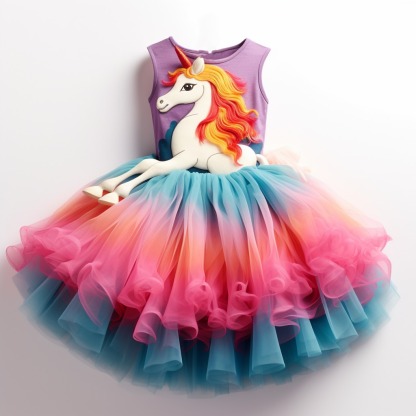 Rainbow Unicorn Appliqué Tulle Party Dress
