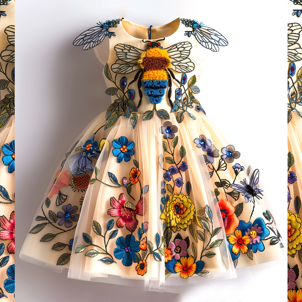 Bee Flower Appliqué Tulle Sleeveless Dress