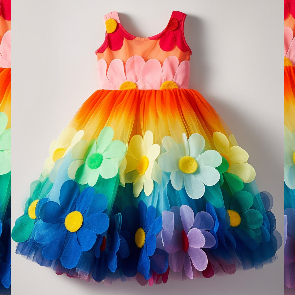 Spring Rainbow Flower Tulle Dress
