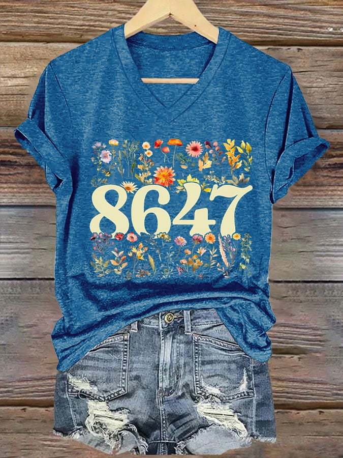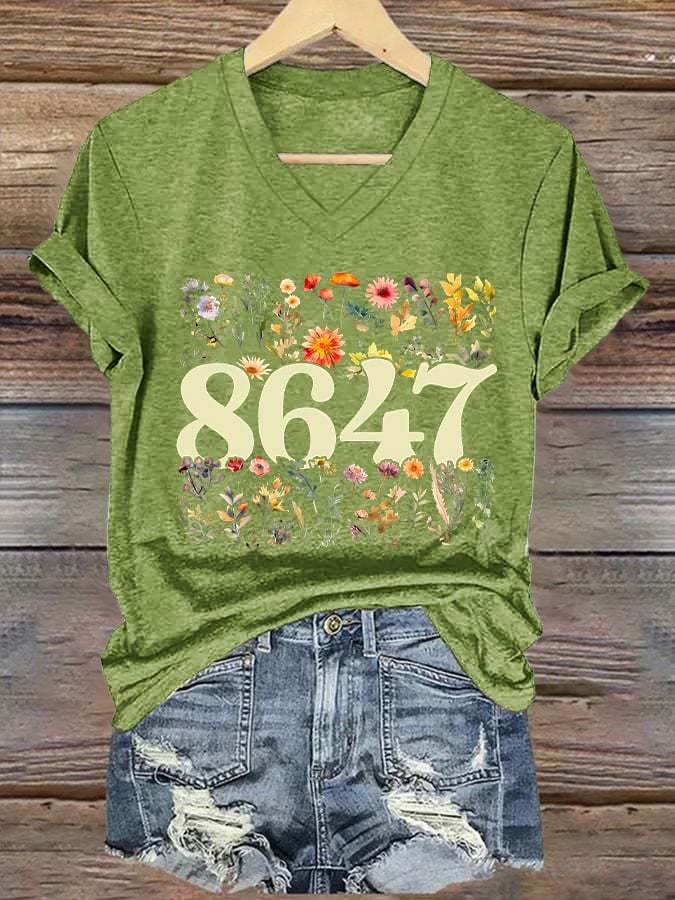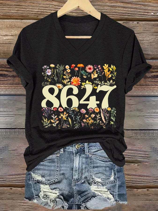 🔥Buy 3 Get 15% Off🔥V-neck 86/47 Flowers Print T-Shirt