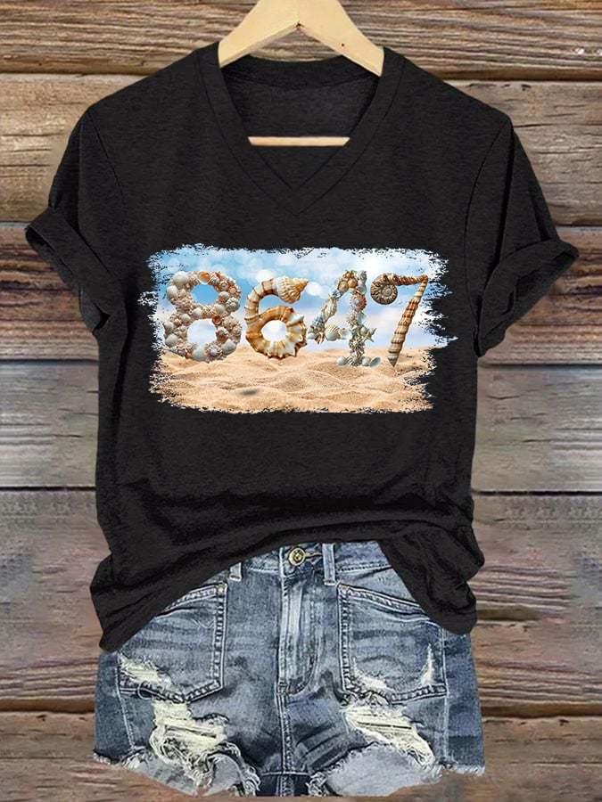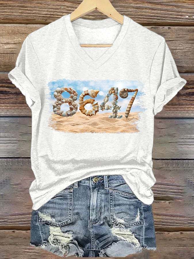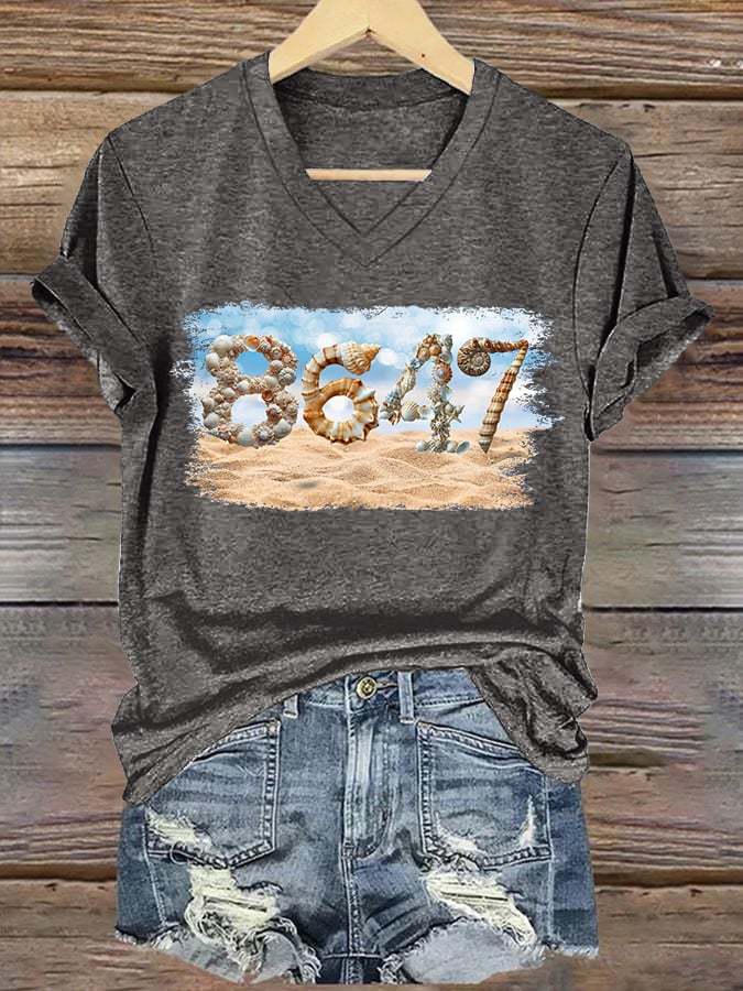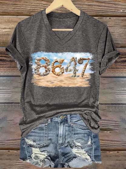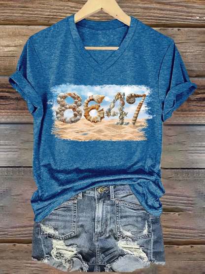 🔥Buy 3 Get 15% Off🔥V-Neck Retro 8647 Beach Seashells Print T-Shirt
