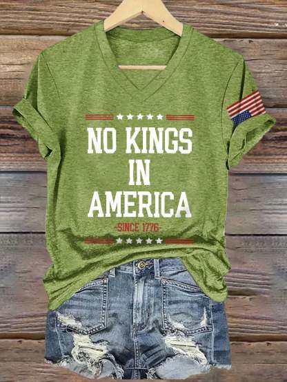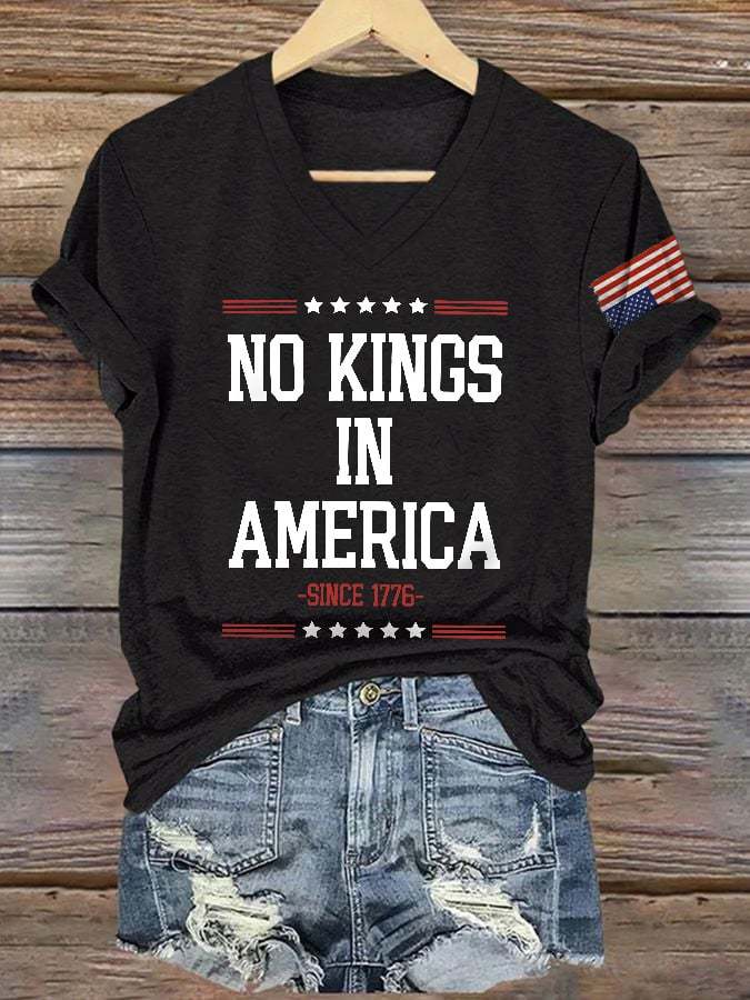 🔥Buy 3 Get 15% Off🔥V-Neck Retro No Kings In America Since 1776 Print T-Shirt