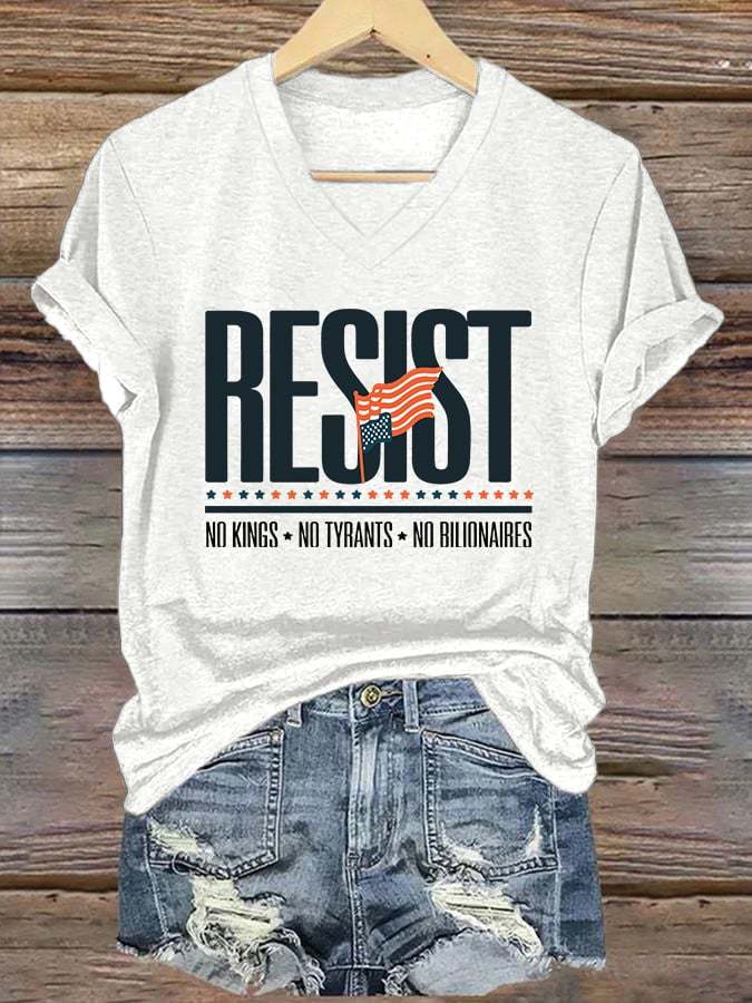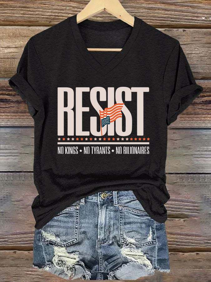 🔥Buy 3 Get 15% Off🔥V-Neck Retro Resist No Kings No Tyrants No Billionaires Print T-Shirt