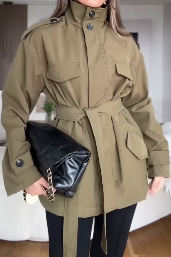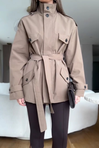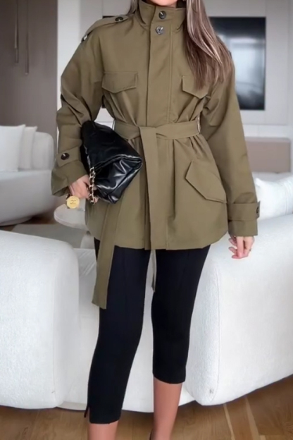 Women Casual Lace-Up Worker Windbreaker Jacket