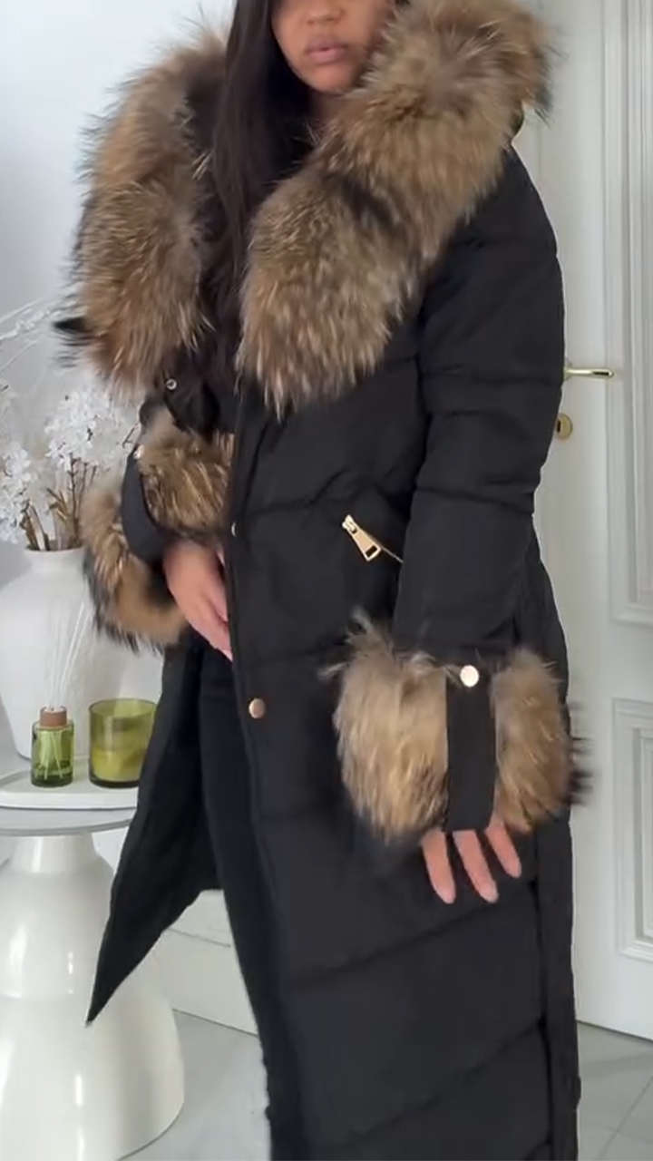 Women Fur Collar Splicing Casual Cotton Jacket