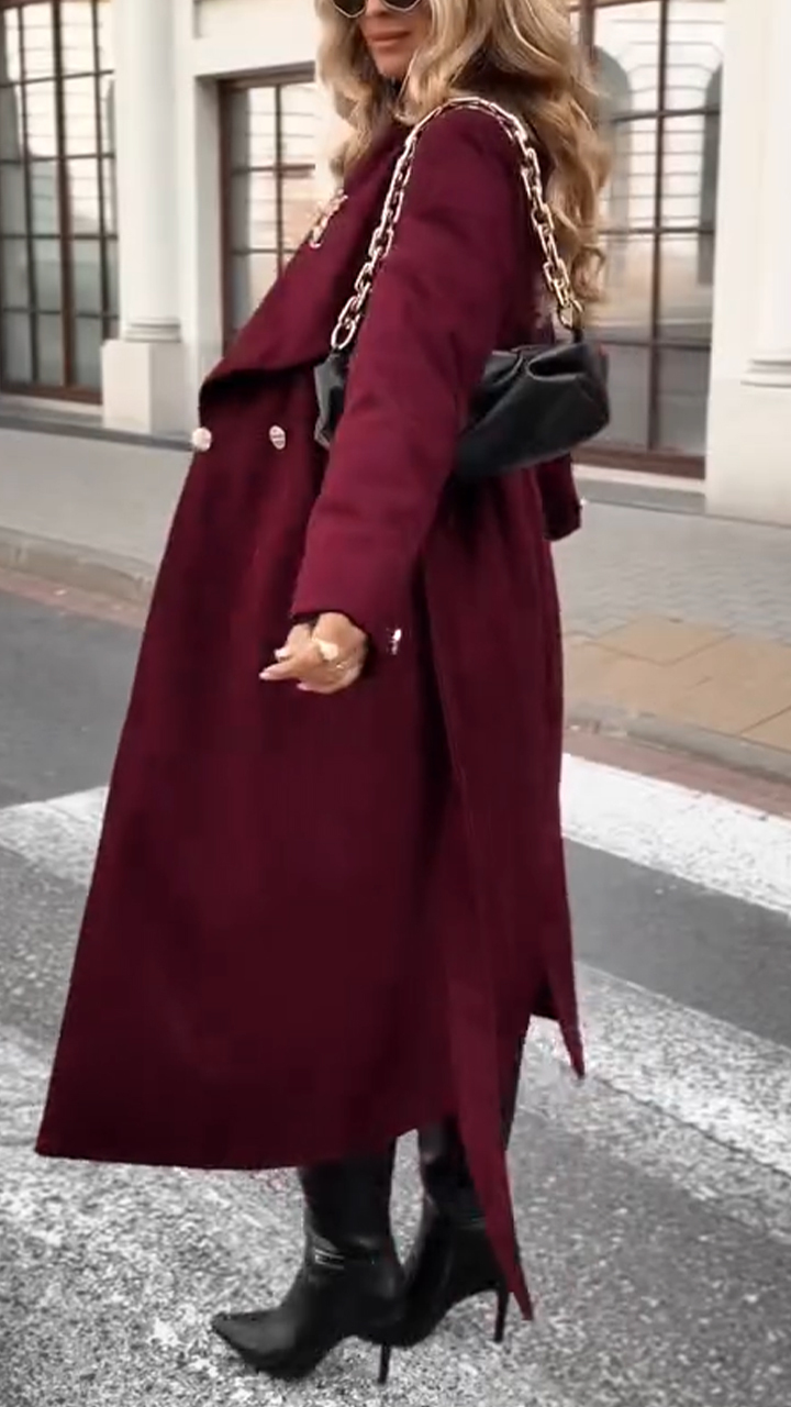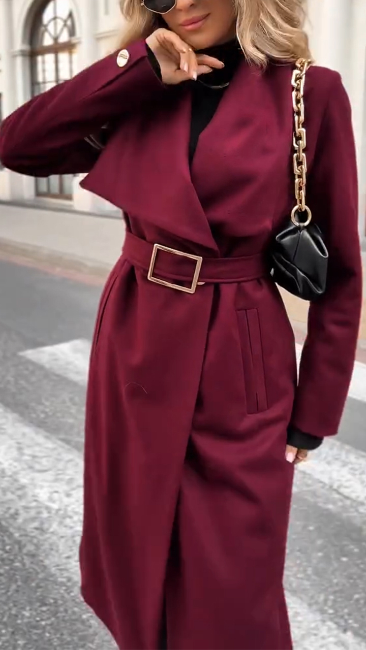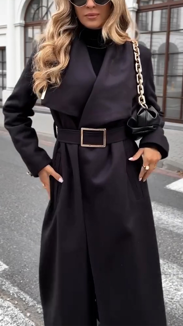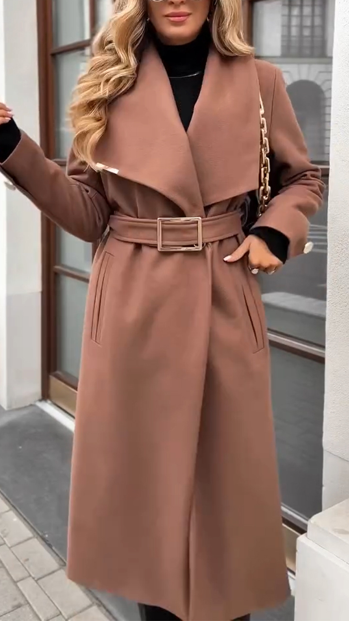 Women Lapel Solid Color Temperament Casual Windbreaker
