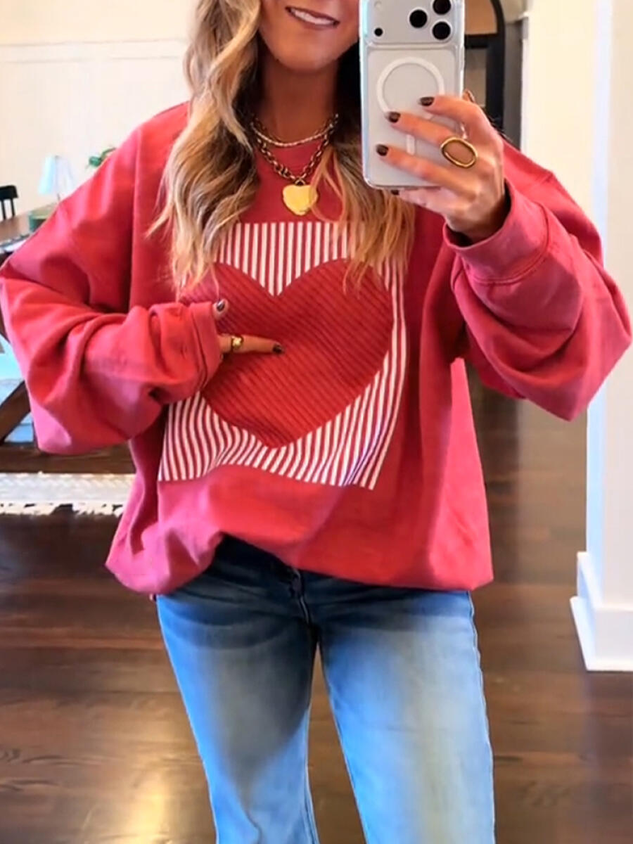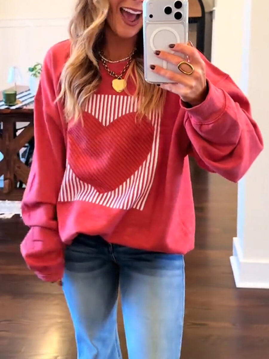 Women Round Neck Love Printed Casual Valentine's Day Weatshirt