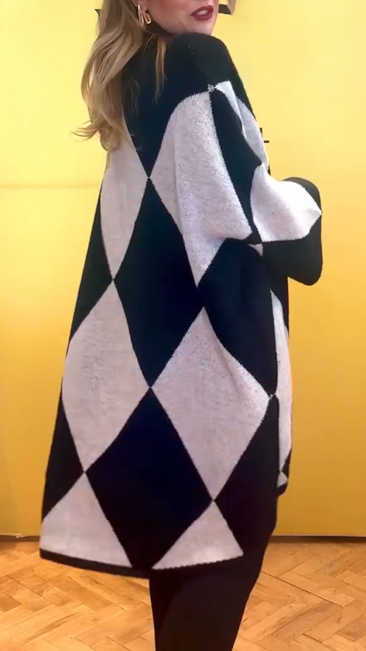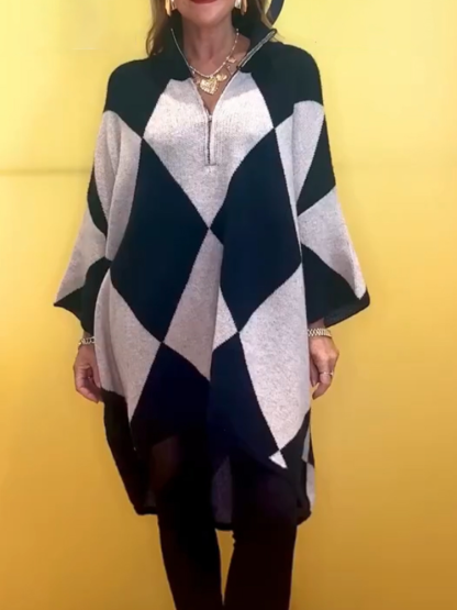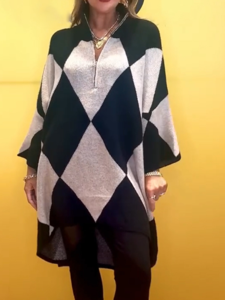 Women Stand Collar Half Zip Plaid Casual Long Top