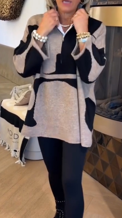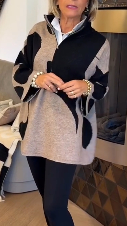 Women Stand Collar Half Zip Printed Casual Top