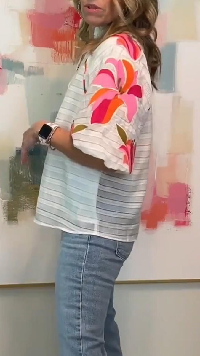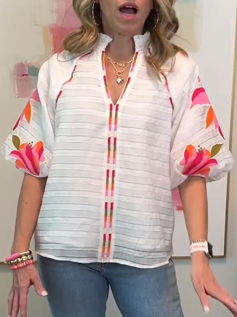 Women V-neck Printed Casual Top