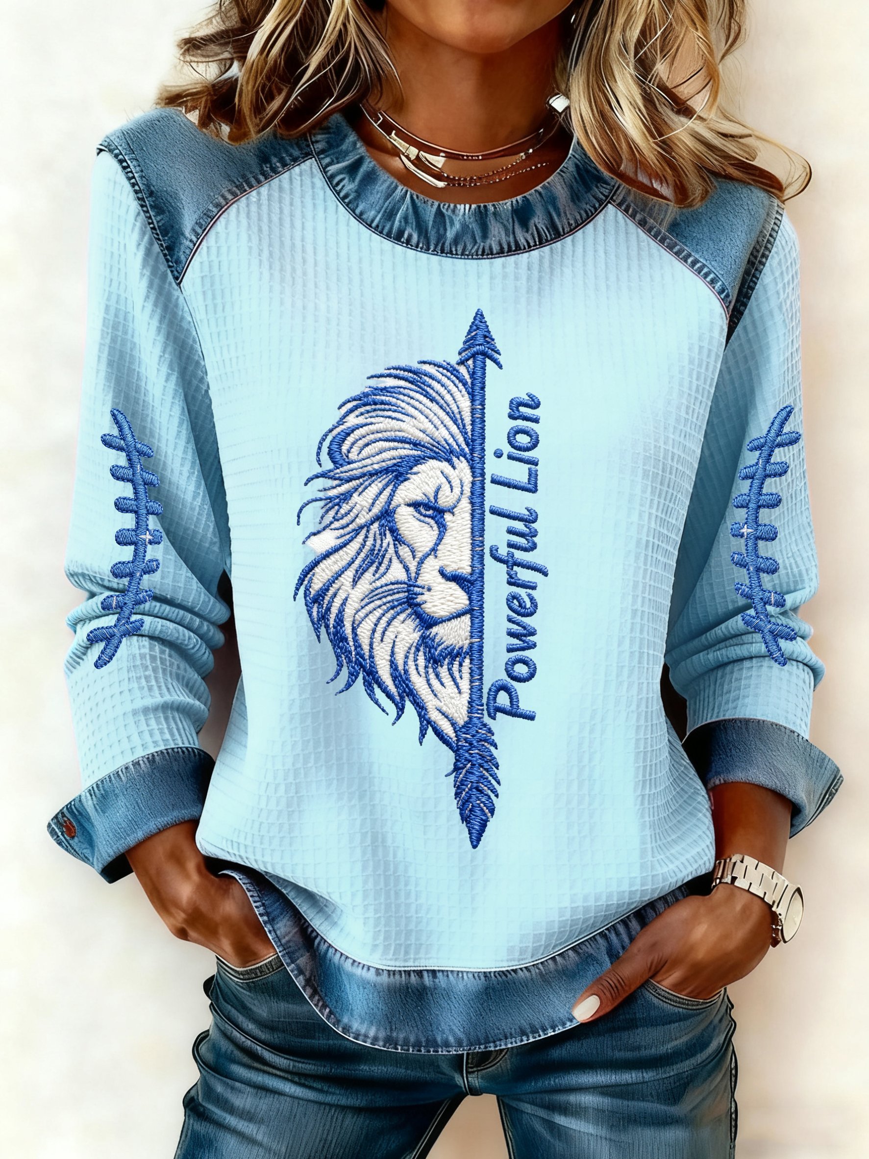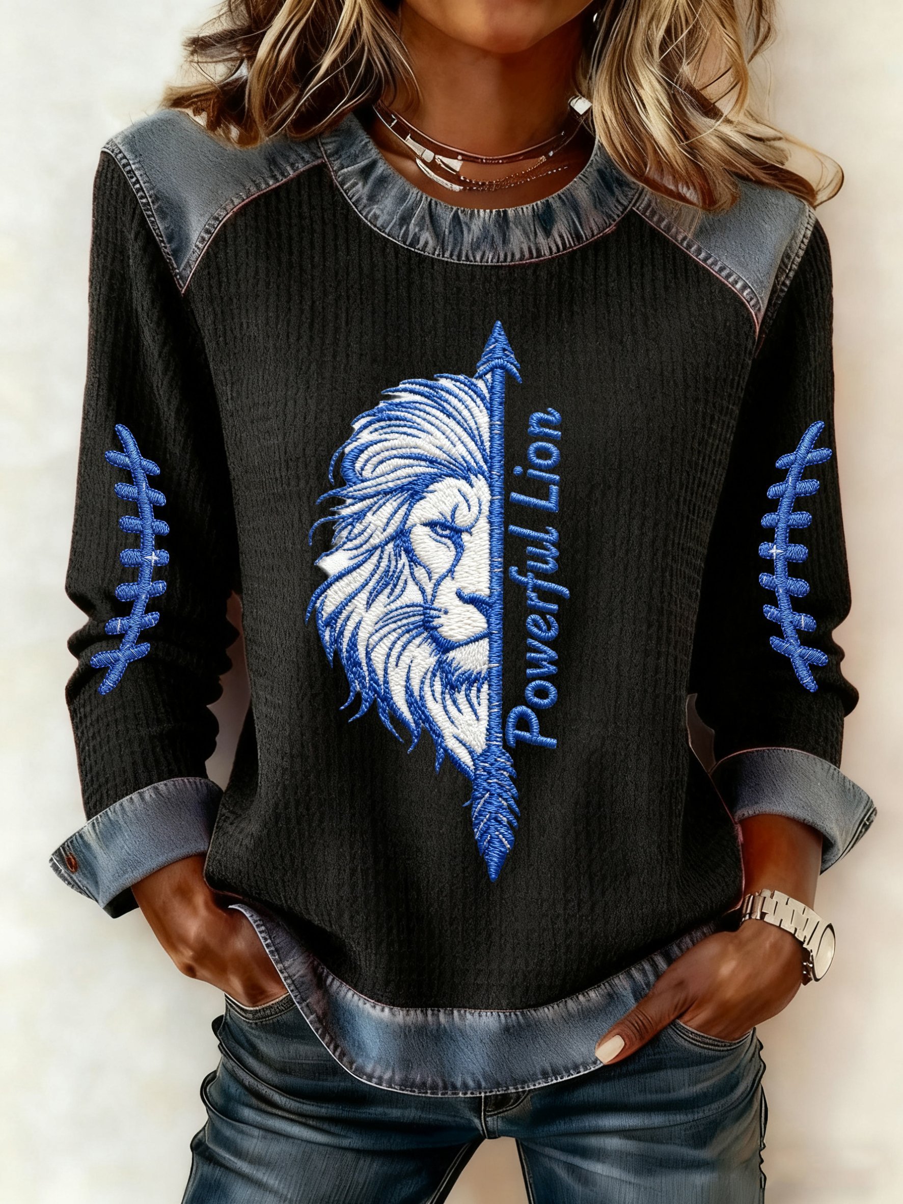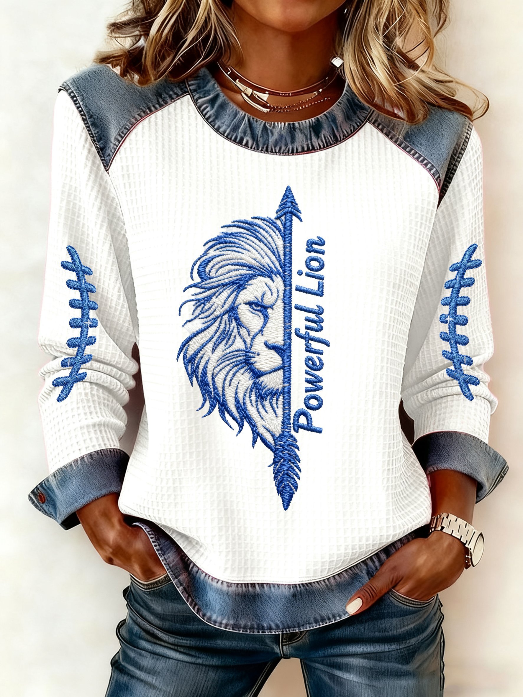 Women's Autumn/Winter Rugby Imitation Denim Print Top