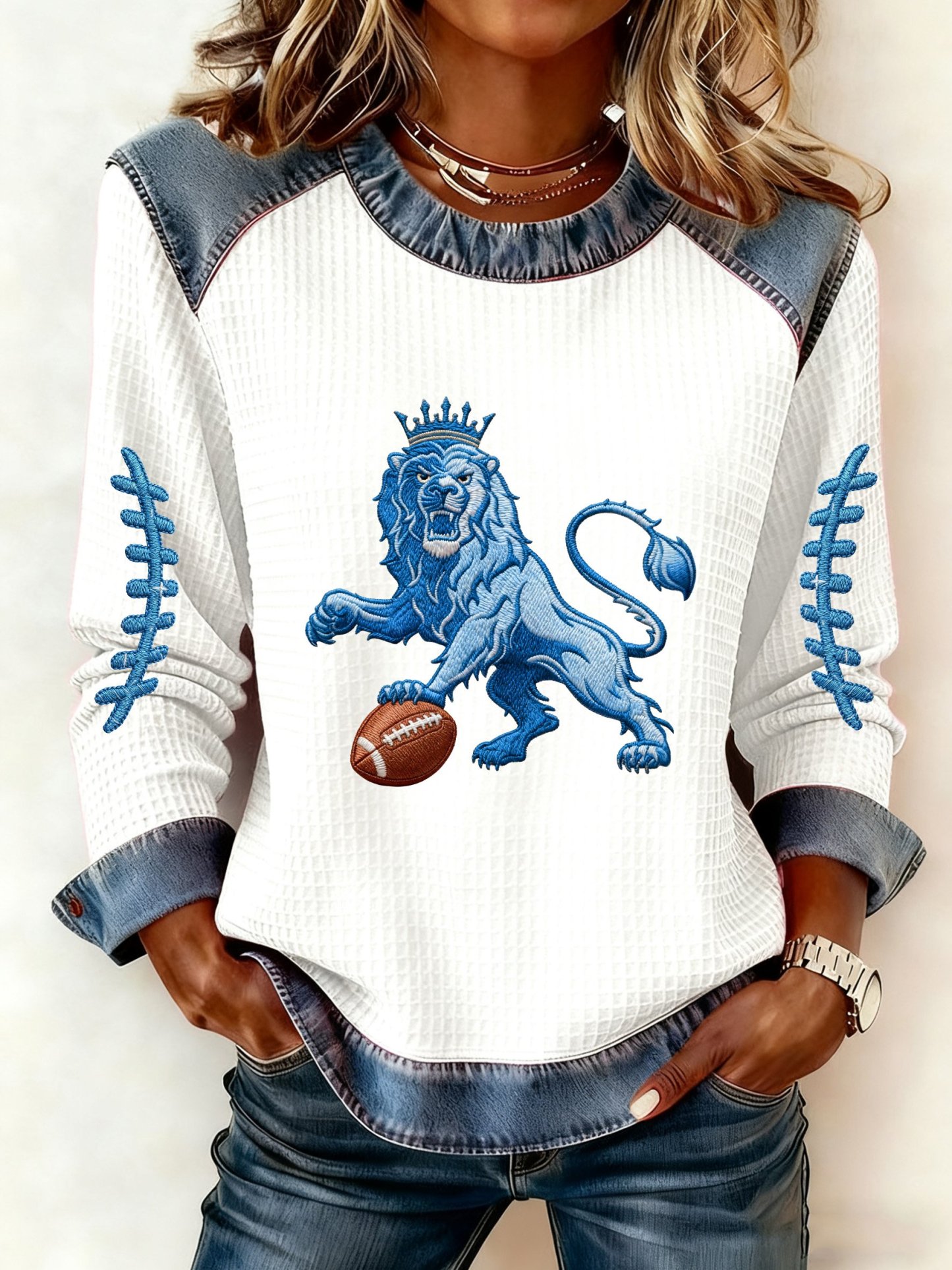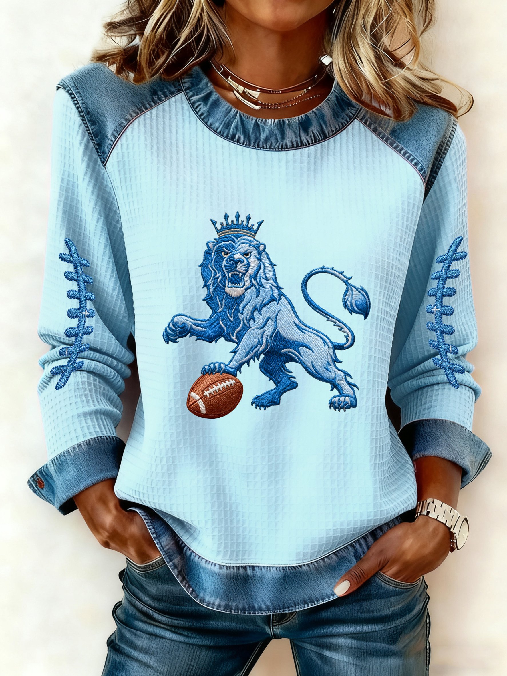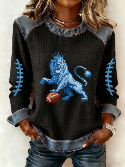 Women's Autumn/Winter Rugby Imitation Denim Print Top