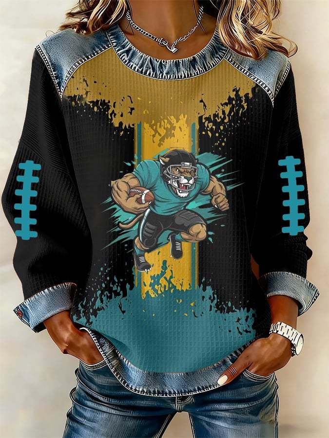 Women's Casual Football Print Long-Sleeve Sweatshirt