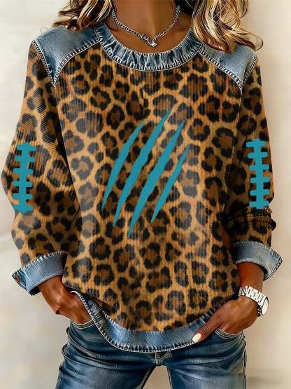 Women's Casual Football Print Long-Sleeve Sweatshirt
