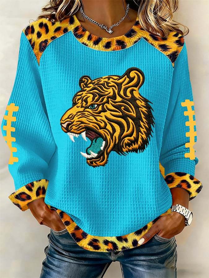 Women's Casual Football Print Long-Sleeve Sweatshirt