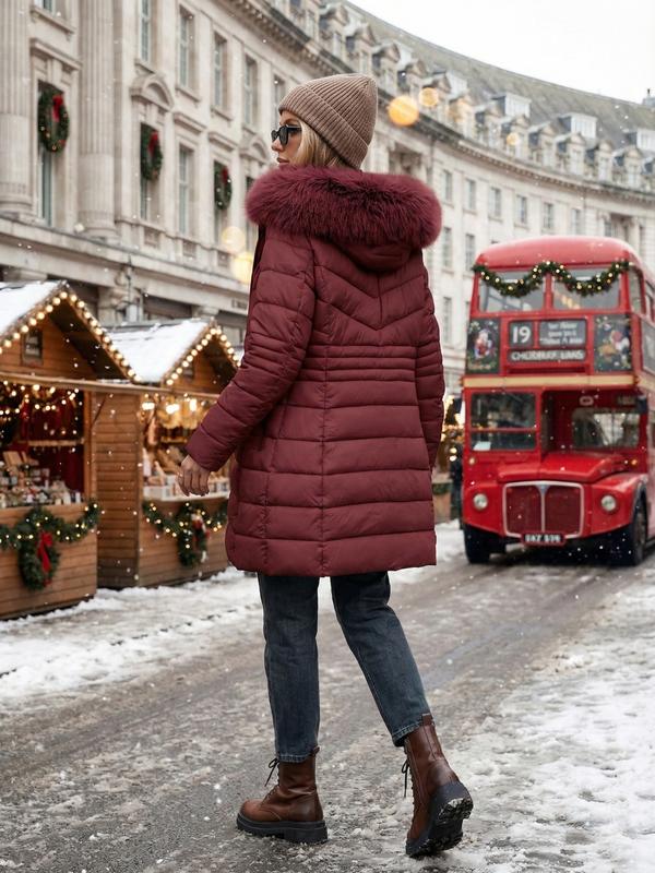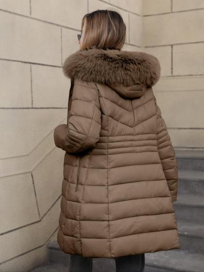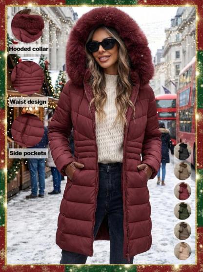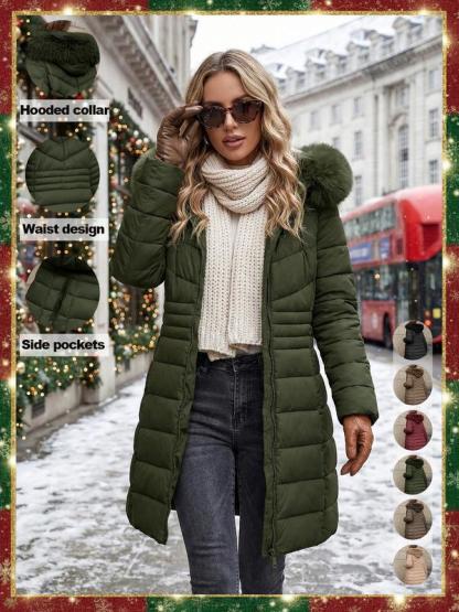 Women's Casual Hooded Waterproof Cotton Jacket, Lightweight Down Coat with Pockets, Loose Fit Thick Fabric for Fall & Winter