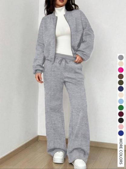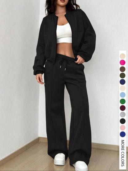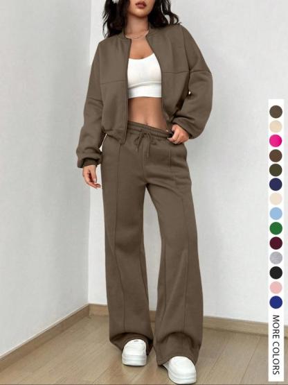 Women's Casual Striped Long Sleeve Zipper Jacket and Pants Set, Airport Wear, Fitted Natural Waist, Regular Length, All Seasons