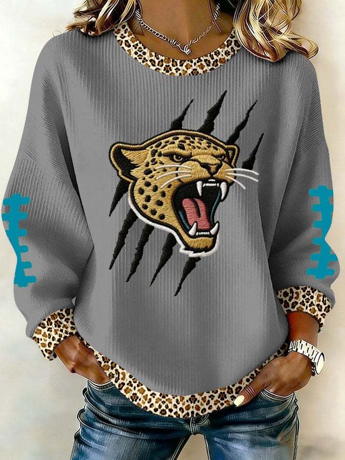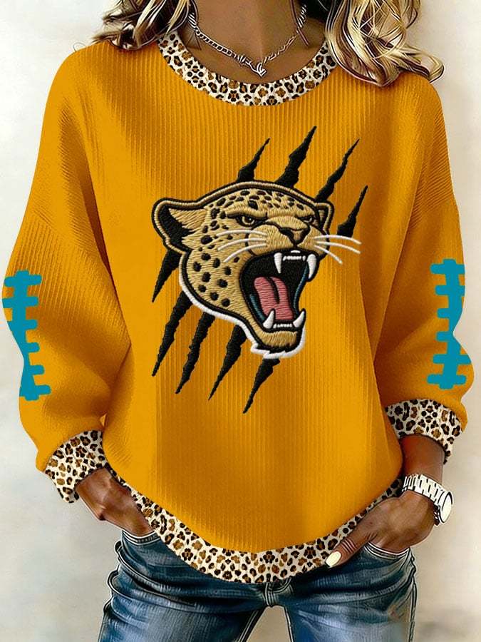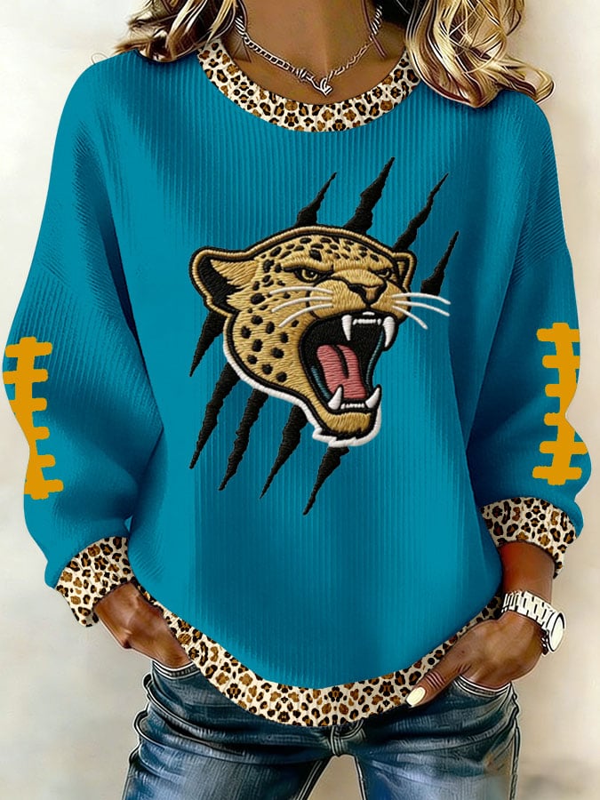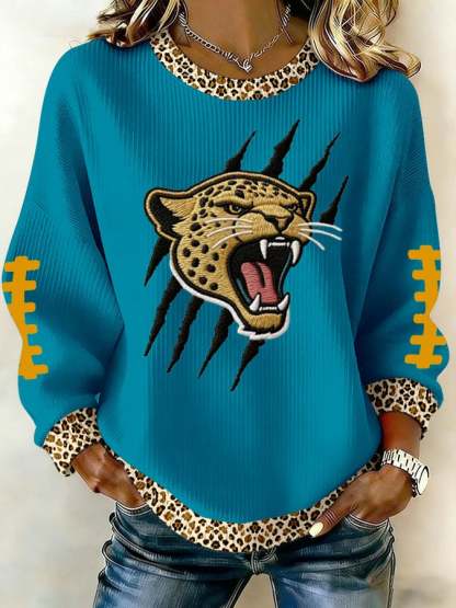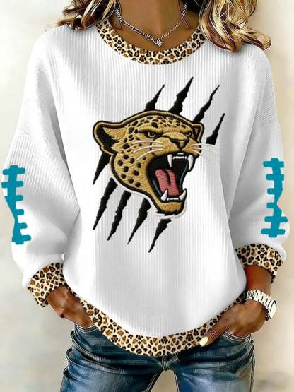 Women's Football Print Knit Crew Neck Long Sleeve Top