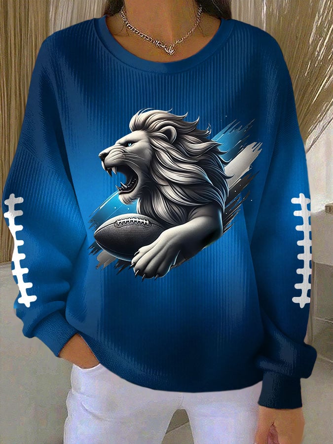 Women's Football Print Knit Crew Neck Long Sleeve Top