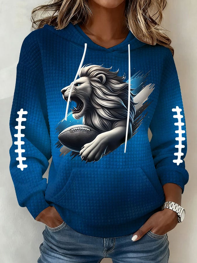 Women's Football Print Plaid Fabric Hooded Sweatshirt
