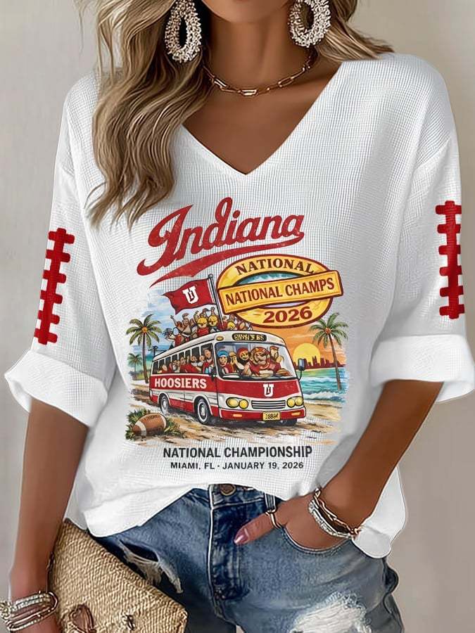 Women's football Print Waffle Long Sleeve T-Shirt
