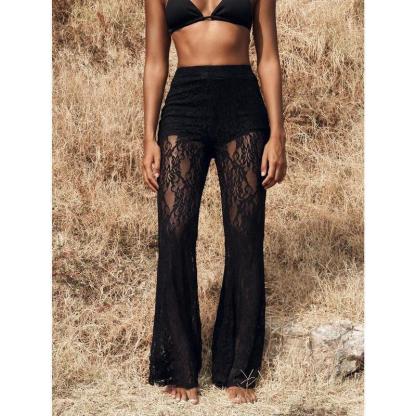 Women's High Waist Flare Lace Knit Vacation Pants